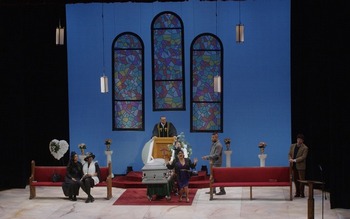 Douglas Lyons' two-hour play (with intermission) debuted in 2020 at the Queens Theatre in the Park and moved to the Circle in the Square on Broadway, where it closed after a two-month run, reportedly due to the financial impact of having to cancel a number of performances due to COVID-19. And now it gets a white tablecloth revival from The St. Louis Black Repertory at the Edison Theatre, under the resonant and authentic direction of company founder Ron Himes. Chicken & Biscuits is a sort of Black version of 1996's Sordid Lives: a gay character, Kenny, played by ultra-naturalistic Cameron Jamarr Davis, struggles to find family acceptance. It's mostly set at the funeral of Kenny's grandfather, and Kenny's "friend" is, in reality, his long-term lover Logan, played by the set-fire-to-the-curtains hilarious-till-it's-all-too-real talented Jacob Schmidt. The funeral ceremony is officiated by Kenny's father, Reginald Mabry (a sort of condensation of all the greatest Black preachers in history), a minister in a New Haven, Connecticut, church who is also the son-in-law of the decedent. He's played by the great A.C. Smith, and the preacher's wife Baneatta is the excellent Denise Thimes, who, of course, is the daughter of the decedent, with strong feelings about her son Kenny's boyfriend. The fine set is by Tim Jones, with very nice lighting by Ethan Steimel. Sordid Lives has a lot more Southern literary weirdness to it (the family in Chicken & Biscuits is originally from Raleigh, North Carolina). But perfectly timed direction and tightly focused acting lifts this play into a ten course meal, with a lot of modern-day references in the script. A.C. Smith is constantly chasing after the wandering sheep of his flock as the minister, with a manner and speech that rings out like a hundred-pipe organ in amazing harmonies. Ms. Thimes has an implacable poise that contrasts beautifully with Paulette Dawn, who plays Baneatta's brash and bawdy sister Beverly, Ms. Dawn being full of pizazz in a very straight-out comic performance. Under the power of their combined sway, the whole show maintains its own impossible moment. Kaylyn McKoy is incorrigibly funny as Beverly's Atlanta-born "influencer" daughter La'Trice (though I bet you anything that, one of these days, Ms. McKoy will also make for a perfect, super-classical Cecily Cardew). And Alex Jay is more human than human itself, transcending to an "all-embracing" condition as Simone, the sister of Kenny. The show has its own particular balance of humor and kindness and occasional menace. And if they all spoke with Irish accents I'd probably be gushing about the "angry young man" that lurks in nearly every one of them. But the actors' nobility of the self becomes a lantern of hope. This Chicken & Biscuits finds strange new moments (at least two) of interpersonal relationships twisting and intertwining and reaching unexpected new plateaus under director Himes. There's just a lot to know about people and their precise realities when they occasionally face-off, which is admirably revealed here. Excellent work too by Delisa Richardson, who makes a surprising addition to the cast, creating her own sort of alchemy. The very good costumes are by Andre Harrington. And congratulations to the actresses themselves for all their fabulous make-up, which I remind myself is a perfectly valid choice for this production. But what a silly name for a show that takes you to delightful new places. The occasionally huge scale of the comedy is oddly fresh, and the characterizations each race down their own vastly different avenues. Chicken & Biscuits runs through January 26, 2025, at the Edison Theater of Washington University in St. Louis, at 6445 Forsyth Blvd., St. Louis MO. For tickets and information, please visit www.theblackrep.org. Cast: Production Staff: * Denotes Member, Actors' Equity Association ** SDC, The Director is a Member of the Society of Stage Directors and Choreographers, Inc., an independent national labor union. |