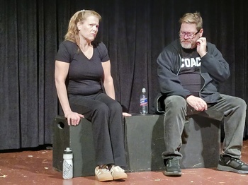 Bell Bottom Boos, by Rita Winters of St. Louis, is set on Halloween night 2023, fifty years after the death of a young woman who now haunts the bar she'd left before her sudden demise. Sarah Vallo plays Cindy, the ghost, with Christopher Plotts as a ghost-hunter who knows Cindy regularly reappears there on the last night of October. A goofy bartender (Ethan Perisho) and an intrigued patron (John Pleimann) are each enamored with the red-headed beauty. But her ghost-hunter tries to change the chemistry of it all and coax her out of her lonely orbit. The whole evening seems penetratingly rehearsed and perfectly choreographed, but lacked a bit of confidence during the performance I attended. This seemed to contribute to occasional staginess on the opening weekend. Deb Dennert and Gretta Forrester play old friends who meet again at a funeral in Points of Intersection. It's written by M.K. DeGenova of Ste. Genevieve, Missouri. Alice (Ms. Dennert) is the deep-blue feminist, a hard-driving corporate lawyer, and Emily (Ms. Forrester) is the one who gave it up for family life. Suddenly, Alice begins to wonder about the future crowd size at her own funeral, after a life of her own philosophical self-fulfillment. And Emily is caught off-guard, and is forced to defend her own abandonment of self, choosing husband and kids. These high-quality actresses renew a confrontation in us all, in a way that feels spontaneous and caught unawares. In the excellent Stranger Than Fiction, by local writer and artist Marjorie Williamson, a woman (Amie Bossie) is reunited with her playful imaginary friend from childhood (Ms. Vallo). It is an extremely well-constructed examination of a life, set in a bookstore many years after Ellen (Ms. Bossie) has told Pamela (Ms. Vallo) of all her girlish hopes and dreams for the future. It's only the play's premiere, but it already feels like an enduring little epic that wastes no time in constructing an entire human being, full of private but very human disappointments–and Pamela (Ms. Vallo) puts her on the right track again, at last. For some reason I was swept up by Put Me In Coach, by Stuart A. Day of Lawrence, Kansas. I believe it was 50% the garrulous writing, and 50% the nervous, talkative performance of Ms. Forrester as a woman who seizes on the wrong coach at a children's tennis class for some unexpected harassment. But it's not what you think. Ms. Forrester, as Cindy, looks inside the role, all around, upside down, and backwards at it, to great effect. But, opposite her, Mr. Plotts turns out to be a different kind of coach, which only heightens the dizzying neuroses of Cindy. She has a plan to become half of the first lesbian couple to adopt a child in the big rectangular state to our immediate west. And it fills her (and us) with a hypnotizing, babbling kind of panic, for a perfect match of Mr. Day's writing, with Ms. Forrester's acting. Hers is one of my favorite performances of the year so far: endearing and totally vulnerable; idealistic and emphatic. Mr. Plotts proves a very thoughtful scene partner, psychologically drawing pieces of Cindy out, one by one. And the Jenga tower of her fears and defiance teeters on the brink of collapse. The funniest one-act also comes from local playwright/artist Williamson, Silver Lining. Two of our most likable and reliable actresses, Deb Dennert and Ann Egenreither, meet for lunch at a fancy restaurant. Ms. Dennert plays Vera, a budding, 70-something kleptomaniac trying to seduce her longtime friend Charlotte (Ms. Egenreither) into a life of crime. I wish I could steal Ms. Dennert's divine sense of ditziness here for myself. But I'll always be more of an exasperated conformist, like Ms. Egenreither in this light comic role. Girl and Goat, by Belleville, Illinois native Dennis Fisher, is strangely involving, exploring the way religion changes us for good or ill. Ethan Perisho returns (from Silver Lining) as a waiter again, but is also very fine (as this second waiter) as a would-be stand-up comic in a nearly identical restaurant, albeit one with a strangely barbaric menu. Here, Ms. Forrester and Ms. Bossie play a long-term lesbian couple at another restaurant, not to be confused with the restaurant in the preceding play (there is no set designer for this Spectrum, as perhaps you might guess, but there is a prodigious rearrangement of tables and chairs and black boxes by the redoubtable stage managers Carrie Phinney and Kasey Kopp). I don't want to say too much about the plot of Girl and Goat, except that it's well-written and stands apart in a clutch of comedies. The final installment, Just Coffee, is a fresh take on St. Peter at the Pearly Gates, though here it's just a table and chair. Mr. Perisho shows admirable skill as the angel dressed in black with the big black book. A series of mortals enters, each in some varying state of shock or surprise. It's written by St. Louis author Marella Sands and gets nuanced, touching performances from Mr. Plotts, Ms. Dennert, Mr. Pleimann, and Ms. Vallo. I don't know why that type of story still works so well. But Just Coffee shatters our preconceptions over getting into Heaven or Hell. And, as I sometimes say, everyone in town should have a new set of lighting. Just, you know, as a public service program. Merci! Spectrum 2025: An Evening Of Short Plays, presented by First Run Theatre, runs through March 2, 2025, at Chapel on Alexander, 6238 Alexander Drive, St. Louis MO. Admission is free. For tickets and information, please visit www.firstruntheatre.org. Ensemble: Production Staff: |