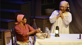 However, the artistry of ensemble movement hits its greatest peak in the very first scene. Smooth and professional Joy Ike (as Charity) pounds a metal tub of clothes with a big stick, as the other women come and go with other people's laundry, chanting old slave songs in the true story of a labor uprising in post-Civil War Atlanta. That opening scene is outstanding under Jasmine Williams' brooding lighting design. Which perhaps suggests that The Wash needs more regular incidents of pounding and tension throughout. The characters accuse each another of betrayal as they strike for better pay. But their confrontations seem like glancing blows in a story with too much softener. Still, there are moments that make for fine tent poles throughout the play. Rising above all criticism, Velma Austin and Paulette Dawn are excellent as Anna and Jeannie, the two women at the center of it all: Anna is about to lose her modest home, and smart-aleck Jeannie has a splendid change-of-heart halfway through. Long before that, in a fine montage, the washerwomen are rebuffed again and again while out collecting fees (in a charmingly choreographed box-step), and their dialog is punctuated by the rhythm of slamming doors. Christina Yancy is lovely as the conflicted strike-breaker Thomasine. But both she and The Wash would benefit from a more obvious, hostile "out-grouping" in the physical arrangement of the others on stage. Perhaps the pounding magic of the show's very first scene could be grimly reimagined in act two if one of the younger women vandalizes Thomasine's wash-tub. Drama crashes in again when two of the women fail to return from their rounds in the "sundown community" of Atlanta's old fourth ward. Around the same time, the remarkable actress Jennifer Theby-Quinn arrives on stage just as the show finds its chemistry once more. Ms. Theby-Quinn plays the lowly Mozelle, a white washerwoman who shows up unexpectedly in Anna's yard. The cast also features Alex Jay (as Jewel) adding quiet meaning and context to every scene she's in. But The Wash could also benefit from the addition of a movement coach, to remind us we're in the 19th century. At the performance I attended, most of the younger women moved in a modern way. The playwright's dialog also veers toward therapy-speak at times. Scenic designer Dunsi Dai provides a set that's completely original and deceptively simple in outward appearance. Kareem Deanes' photographic projections on lines of fresh-washed sheets are artistic and clear. And the perfect hats and costumes are by Lou Bird. The show includes a fifteen-minute intermission. It's a theme of modern theatre that audiences used to delight in, of drama-ridden labor organizing. And the compelling fervor of pro-worker shows like Waiting for Lefty or The Pajama Game, or the more recent Big Machine, gradually emerges here as well. In this case, it's with a quiet kind of glory, like the first flowers of spring. The Wash, presented by The St. Louis Black Repertory, runs through March 30, 2025, at the Center of Contemporary Arts, 6880 Washington Ave, University City MO. For tickets and information, please visit www.theblackrep.org. Cast Production Staff * Denotes Member, Actors' Equity Association |