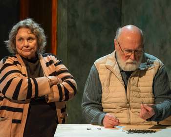Later in life, a performer could theoretically just play "death scenes" over and over, till they've thoroughly rehearsed every conceivable fear or faint or rattle of it. And by then, if you happen to be that type of actor (or a hypochondriac, like myself), you'd have exhausted all your fears, and nothing would ever take you by surprise ever again about mortality, even when you finally embark on your own trip to the undiscovered country. You'd have already confronted it all on stage. A coward dies a thousand deaths. Although a really lucky actor could die many more, if the show is a hit. Except I'd never seen With. And so I never knew of my own remaining blind spot to mortality, which left me unprepared (till now) for whenever I actually do step over into oblivion myself. Carter W. Lewis' breathtaking dark comedy officially premiered at Perseverance Theatre in Juno, Alaska, in 2019. And the two performers at the Gaslight Theatre in St. Louis create a strangely rich experience: laying out the state of a 60-year marriage with perfect comic structure, and charting yet another path to the great beyond. It's not exactly a comedy, though. Annamaria Pileggi directs Whit Reichert as Clifford, who's been diagnosed with a form of dementia, along with Donna Weinsting as his wife Minnie, who's (even more recently) been diagnosed with cancer. And they've mislaid their instructions for assisted suicide, provoking something resembling hilarity (structurally) quite a bit. In fact, both cast members are highly regarded comic actors. So their combined technique and skill at timing holds With together like all the tiny networks of gluten in a fresh-baked loaf of bread. I'm not saying you'll never fear death again. But the process becomes so newly familiar, as they accuse each other of all sorts of household misdemeanors in search of the scraps of paper that will hasten the inevitable, that we laugh from a kind of relief, born of familiarity. With also boasts a strange sort of internal "jump scare" as well: a simple special-effect near the end that lands comically at first. But then, in a flash, our laughter is overcome by madness, thanks to Mr. Reichert's excellent performance. Stories of rats and raccoons suggest that Clifford and Minnie are returning to the earth. Their great director's rhyming behaviors on stage buttress the poetry of it all. And their home, on a set by Patrick Huber, becomes more and more real by the minute. But it becomes a sort of giant Tupperware for leftover lives, as Clifford and Minnie begin to feel they've been cut off from the rest of the world. Strictly by the clock, it's all fairly brief 73 minutes. But it feels like a full-length show. And even in its sheer economy we relish great psychological texture and periodic intensity, as well as something newly foundational in this version of the human condition. With runs through April 20, 2025, at Gaslight Theatre, 360 N. Boyle Ave., St. Louis MO. For tickets and information, please visit www.stlas.org. Cast: Production Staff: * Denotes Member, Actor's Equity Association |