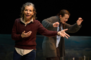 Robyn and Helen are played by the ringing duo of Lizi Watt and Michelle Hand at the Marcelle Theatre. And as much as I want to make a joke about their own personal "Isle of Lesbos," each actress becomes more and more like Schrödinger's cat in its own mysterious box. They suffer a sense of dislocation, having swum ashore from a boat crash–but to which shore? Later, when one of them is accused of being dead, her sense of being robbed is palpable. But anything can happen on a lonely beach, if Shakespeare or even Albee is any guide. And it turns out they're not entirely alone: a dreadful sort of "sea hag" comes and goes, mocking them, till one single illusion begins to coalesce into a concrete sort of truth. You can see it all, though, every detail of a beautiful relationship, as they go back to the first home that they'd planned for themselves, or to a therapy session, and even into the swirling wake of an Evinrude. Or just within a fateful moment of charity to a homeless person, before all this happened. I'm purposely muddling the timeline a bit, but that's a critic's right: to be wrong, in artful ways. Meet Me at Dawn is irresistible–not just in its onstage chemistry, but also in the sense that everything we thought at the outset gets turned around till that final romantic scene; even that concrete truth is jackhammered into its own dreamy personal mosaic by the end. It's the sort of play that makes you want to rush home and embrace your loved ones. Which must be worth it, at twice the price. Meet Me at Dawn runs through April 27, 2025, at the Marcelle Theatre, 3310 Samuel Shepard Drive, St. Louis MO. For tickets and information, please visit www.upstreamtheater.org. Cast: Production Staff: * Denotes Member, Actors' Equity Association |