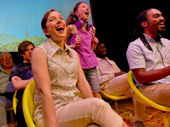 But now the characters in William Finn and James Lapine's Little Miss Sunshine (two hours, with intermission) land somewhere neatly in between: giving us a family who could probably exist only in modern America, including a dad who's a struggling minor league baseball player (as if perhaps he'd never fully grown up), who's also trying to get a book deal for a motivational system he's developed (as if he'd grown up far more than we, ourselves). And a daughter who competes in kiddie beauty pageants, which perhaps amounts to the same thing. I'd say, "where did we go wrong?" as a nation. But, in this show, a lot of persevering and ironic song and dance work wonders as therapy, and a kind of enhanced communication. And also as very reliable entertainment. It's all based on the darkly comic film of the same name from 2006. Three years later it was workshopped into a stage musical, then presented at La Jolla Playhouse in 2011, and two years later opened at Off-Broadway's Second Stage Theatre for a two-month run. The late Mr. Finn wrote the fine character-based music and lyrics, and Mr. Lapine adapted the screenplay by Micheal Arndt. And now the show has popped up delightfully at the Greenfinch Theater and Dive (formerly the Way Out Club). It's warm and funny and a tiny bit creepy and bizarre, in a lively new staging by Fly North Theatricals, under the very able direction (and music directions, and choreography) of Colin Healy, with choreography for Olives pageant dance, by his wife Angela Healy. The onstage family spends a lot of time together in their old minivan. But they roll around on stage, using the entire space, on bright yellow swivel chairs, on a lovely road map from New Mexico west to California painted by Katie Orr. It's a little like an Esther Williams movie set inside a 1978 Volkswagen van, swirling around the desert of their ambitions. But the good thing, for us, is that each of them is sinking in a private sort of quicksand. And the mother, Sheryl–coolly, masterfully played by Eileen Engle–holds them all together with love and discipline as she privately considers divorce. (She's the only one who doesn't get to be a kid.) Zoe Klevorn is excellent as the would-be title character Olive Hoover, light-heartedly going through that tween-age mix of knowing and not knowing. Ken Haller is wickedly real and spontaneous as her sex- and drug-addicted grandfather (the whole thing is more or less PG-rated, plus a couple of "F-bombs"). And then in his final scene as Grandpa Hoover, quietly advising Olive, he's strangely magical. If you happen to live here in St. Louis and know the actor as the genial Dr. Haller, who regularly appears on local TV to answer questions on children's health, you can see that entire persona condensed into just one minute. Later in this show, he's funny and poised as the beauty pageant emcee, and in other roles. Brian McKinley is great as the father–his life is crumbling around him and he seemingly has very little authority over his own modern family. There's a restless, nightmarish quality to his characterization, where life has turned into something completely different from what he'd imagined. It almost seems as if all their freedom had come to them via Jack Kerouac, a darkness to howl into, out on the road, chasing dreams and ambition. Dereis Lambert is authentic and affecting as Uncle Frank, a professor of literature. He has a bizarre reunion with Jeff, the guy who dumped him (provoking Frank's suicide attempt, before curtain-rise) and runs into Jeff again months later, en route to Frank's niece's beauty pageant. Mr. McKinley doubles perfectly as the college-aged mantrap for them both. And Parker Collier is outstanding in a series of roles, Jeff among them, in that comically awful section in a truck stop restroom. I was a bit envious of the young actor Connor Becker, as Dwayne: he has no lines at all to memorize till act two, as the Hoovers' son Dwayne. But then his character breaks a personal vow of silence, having run into his own particular twist of fate. And at that point I became envious of the way he took over the show, howling through his own broken dream. Dwayne wanted to become a fighter pilot, and there are video game projections upstage later, in act two, on the way to Los Angeles (900 miles west of their home in Albuquerque, New Mexico). Little Miss Sunshine makes for a very good modern musical, where bitter character development is relieved by the light comic touch of all its song and dance. The children's beauty pageant is not quite as unsettling as in the original movie, but Zy Beckley, Brynja Murphy, and Callum Thompson are lots of fun and very professional as the other kids on this particular stage. We also see them earlier, taunting Olive over her own ambitions. The fine costumes and props are by Kel Rohlf. And I guess I always think things should be darker, emotionally. Then again, I am half-Scandinavian. Still, for as smooth and proficient as it absolutely is, it's probably every bit as unsettling as it needs to be, as one 21st century American family rises to face their many challenges all at once, but together. Little Miss Sunshine, a production of Fly North Theatricals, runs through May 4, 2025, at the Greenfinch Theater and Dive, 2525 South Jefferson Avenue, St. Louis MO. For tickets and information, please visit www.flynorth.org. Cast, in order of appearance: * Denotes FNT Student Fly North Theatricals Band Production Credits: |