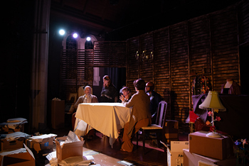 Jacob Juntunen's Professor House, in a world premiere production by Contraband Theatre, is a fresh new science fiction yarn that runs neck-and-neck with a very impressive ghost story, under the excellent direction of Sam Hayes. And it's hard to guess which narrative will finally win out. A yearning for normality puts us on a path toward the bizarre, as climate change grows worse and worse. But you'll be surprised at how easily all the characters, twenty years from now, have learned to shrug off each new bout of devastating weather. They accept higher government carbon taxes for the dubious luxury of a dream house with a new fireplace, among other indulgences. And that "come what may" attitude adds to the tension. The two hour show (with intermission) is studded with even darker compulsions: living characters are summarily yanked around like puppets by a ghost (Maida Dippel as Tommi); as a brooding professor of poetry, Godfrey ("Peter") St. Peter, played by Ben Ritchie, falls prey to Tommi, the same invisible muse. His family offers him love and comfort, but remains walled-off from his own internal demons. The spirit of doom and the specter of loss are all around, like a modern Poe story, in spite of the miracles of technology. A strange new world of monsoons and uninhabitable regions and agricultural collapse pervades. Mostly in the background, climate change makes for a great cauldron into which playwright Juntunen throws some very different spells and hexes. Professor House pulls you ahead with the torque of a modern electric car, accelerating much faster than you'd expect. Plot and stagecraft and implication are thrown out ahead of us all at once, like handfuls of tennis balls before an eager puppy. It's super-taut and madly engrossing as we put the story together on the fly, struggling to pierce an elegant dramatic "opacity" in the first few scenes. A sense of urgency fills the theater. Mr. Ritchie peels off the edges of his last layer of sanity, referencing Allen Ginsberg's "Howl," even as he struggles to preserve one tiny corner of natural beauty in his world. Here and there, his eyes glimmer with strange inspiration. But elsewhere, you can sense him drowning in the memory of losing a child in a crowd. Overall, it's the story of a wise man stampeded up into his own belfry, echoing our own fears as well. Claire Coffey is patient but also a genre study in helplessness as his mathematician wife Lillian. And Sadie Harvey is uneasily pulled into his funk as their daughter Rosamond. Ron Baker portrays the couple's very affable son-in-law, Louie, whose cheerfulness only serves to isolate the poet further. Like any good horror story, the hand of fate pushes them all along on a perfectly spooky set by Eric Kuhn. Through it all, the living are turning into specters as well, thanks to an extremely lucrative invention by Tommi before she died. "The Lens" is a miniaturized, wearable holographic projector. And thanks to that leap forward, your own spectral hologram can now appear in real time anywhere around the world. But I'm suddenly not sure how I feel about that, after seeing this particular ghost story. The most personal haunting may belong to Tommi herself existing as a living "ghost" in her own past mortal life: first as an orphan in the "Outlands" (the deadly hot desert of the southwest); and later when she's powerless to halt the destruction of a sacred Native American archaeological site; or after that, struggling to get into a PhD program, in spite of her own mathematical genius. Taijha Silas adds gentle skeins of heartbreak as her lover. And occasional shrieks of madness punctuate the show's strangely beautiful failed warmth, amidst a sort of blue-violet of rising melancholy. Why would you subject yourself to all this? Perhaps because it makes us feel so much stronger by the end. Professor House, produced by Contraband Theatre, runs through October 25, 2025, at the Chapel on Alexander, 6238 Alexander Dr., St. Louis MO. For tickets and information, please visit www.contrabandtheatre.org Cast (in order of appearance): Production Staff: |