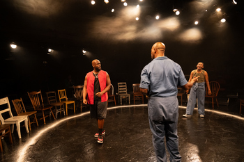 It's Pinter without the pauses, as family drama smashes through the guardrails in a very fluid, dancey show, with relentlessly great choreography by Kirven Douthit-Boyd of St. Louis Dance Theatre. In 2007, The Brothers Size premiered simultaneously at the Young Vic in London and at the Public Theater (in a co-production with the Foundry Theatre). McCraney won an Academy Award for another work, his screenplay for Moonlight, on a memorable night in 2017. In The Rep production, Christian Kitchens is terrifically exuberant as the reckless youngest brother, Oshoosi. Even before his older siblings clash, he's every spark that flies off their parentless family dynamic. Mr. Kitchens will drive you crazy, if you're older, with his heedless antics. But the scale and scope of all three characters on stage transmutes invisibly into something vastly greater. And that's when you start to feel a bitter sense of pity for him as a pawn for the gods. Halfway through, things change before you're even aware of it. And he's caught up in a struggle between two infinitely more powerful beings. Nic Few is funny and charming, but mostly glows like a burnished, double-stamped gold coin as the eldest brother Ogun, the de-facto parent of the family. He blazes with a particular kind of righteousness. In his perfectly disciplined life, as the owner of a small auto repair shop in the Louisiana Bayou, he's also devoted and occasionally deeply sympathetic, because Southern law is an enemy to them all. Still, chaos crawls in again and again, complicating family relationships. And all the family rules belong to him, which means that middle-brother Elegba (the magical Donald Jones Jr.) must create his own existence outside of a powerful altruism. It reminds me of a couple of plays I saw last season in Chicago, though The Brothers Size can claim all rights of originality in this very short list. In a world premiere last year, in Leroy and Lucy at Steppenwolf, the characters also changed into eternals, though much more overtly. And in At The Wake of a Dead Drag Queen at The Story Theatre (presented at the Raven Theatre), we were told an African folktale of a woman desperately in love, who takes some very bad advice. It's the same folktale referenced here in The Brothers Size. But this play predates At The Wake... by about twelve years, and Leroy and Lucy by seventeen. No disrespect to those other plays, of course. "Randomness is clumpy" as they say (about coincidence) on the science podcast "The Skeptics Guide to the Universe." In this production, the talents of the playwright, director, and choreographer merge together to create a flickering duality that's strange and unexpected. We stare in disbelief as a new reality thrums before us. Thematically, The Brothers Size takes us all the way back to the beginnings of theatre, as gods emerge and intervene on the most personal level in our lives. But if that sounds too ethereal, the show also bangs and clangs with genuine passion and humor. And in a very modern context, in the Studio Theatre at the Rep, we descend into the sub-basement of the mind: where motive and reason also wear fearsome masks. The Brothers Size runs through November 16, 2025, at The Repertory Theatre of St. Louis, 130 Edgar Rd., St. Louis MO. For tickets and information, please visit www.repstl.org. Cast: Production Staff: Additional Production Credits: |
