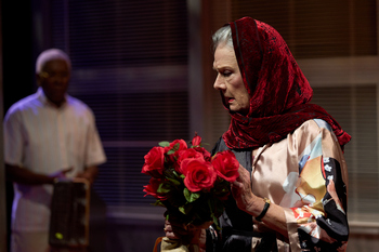 The Latin-flavored comedy, inspired by the great Russian playwright, runs about two hours with a ten minute intermission at the Marcelle Theater and is set in present day Rio de Janeiro. Graceful palms shade an elegant tropical set by Patrick Huber. And a grand old actress, Alma, played by the formidable Sally Edmundson, takes over her daughter's apartment as she prepares to mount Chekhov's famous play. Pedro Brício's Um Jardim para Tchekhov premiered just a year ago in Belo Horizonte, before the show embarked on a tour that took the cast through Rio de Janeiro, Sao Paulo, and Brasilia (this is considered normal for a successful play in Brazil). The playwright was nominated for a Shell award for "Best Author," and now Steven K. Smith has written this English translation, making its world premiere in St. Louis. It is (as you'd expect) funny and sad, and full of fresh, introspective moments that blossom under the direction of Upstream founder Philip Boehm. And it's everything you'd hope for from Chekhov himself: shaped by strange echoes of humor, even in the production's naturalism and yearning and broken spirituality. The cast is hyper-realistic, but threads its way into modern comedy as well: Jocelyn Padilla plays Alma's long-suffering daughter Isadora, and Aaron Orion Baker is Isadora's soccer-obsessed husband Otto (and later a funny theatrical producer). J. Samuel Davis is ethereal and even more exotic as Chekhov himself, in scenes with Ms. Edmundson. Their moments together have a highly polished give-and-take to them: the slightest gesture by Alma draws a complementary alteration in the stage picture from this Chekhov, as if the pair were speaking fluently in a secret body language. Sarah Wilkinson is Alma's young acting student, Lala, and gets one of the show's greatest Chekhovian moments near the end. Ms. Wilkinson throws herself into the absolute "not knowing-ness" he created for the modern stage. Here, the young actress goes "falling-up the zen staircase," leading us toward a guileless kind of enlightenment. There also happens to be a gun in this homage, a Glock 9mm (Otto is a beleaguered police captain in Rio). And of course, in the lore of the Russian playwright, it must be fired later in the show. The same thing applies to Isadora's lonely speeches of heartbreak, which trigger the final scenes under Steve Carmichael's gentle light plot. All the while, there must be any number of Russian climaxes (in the manner of Uncle Vanya) going on out in the streets of Rio. This modern Brazilian family is hemmed in by random gunfire all around, thanks to a great sound design by Kristi Gunther. But the suggestion of dueling desire and impotence is heightened behind closed doors, under the strict gun control rules of their high-rise apartment. And here gun control is a good thing, as Otto is constantly roused to fury by loud neighbors. Set against that all that comic rowdiness, his wife is filled with unheard pleas for love and understanding. And all their frustrations reach heights that are truly Chekhovian. An Orchard for Chekhov, produced by Upstream Theater, runs through November 23, 2025, at the Marcelle Theater, 3310 Samuel Shepard Drive, St. Louis MO. For tickets and information, please visit www.upstreamtheater.org. Cast: Production Staff: * Denotes Member, Actors' Equity Association ** Denotes Associate Member, Stage Directors and Choreographers Society |