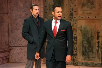 Let's start with the work of the chorus, led by DeAnna Wright as Priest/Chorus Leader. They sing original music by Fabian Obispo and they do it very well, but I am unfamiliar with the style so I have no way of knowing how authentic it sounds. It is effective and carries the production well. Ms. Wright's solo declamation is a little sing-songy, intended or otherwise, to my ears. Still, she is commanding in her nun's habit, I believe that she is the spiritual mother of the rest of the chorus, clothed in modern urban rag-tag. Andrew Hardaway commands the stage as any Oedipus must, strong of bearing and oratory. I kept wishing he were dressed in robes that he could move around in, to add to his majesty, instead of the extremely handsome black suit. Erik Meixelsperger delineates the character of Kreon in a very physical sense. His bearing, while regal, is a little bit less so than Hardaway as Oedipus, the second in command, probably with the skill set to assume the top post but without the burning desire to expose himself. The important scene between Kreon and Oedipus goes over this, Mr. and Meixelsperger's performance physically inhabits that. Olivia Osol exudes glamour in her costuming (a beautiful gown, circa 1970s-1990s) and her physical presence. Lawrence James as Teiresias is costumed and speaks as a Caribbean native, to inform the audience of his outside status. The accent, at times excellent, fades in and out of focus as he is faced with issues of declaiming long lines of text. Messenger One and Two are taken by Katie Sah and Scott Shomaker (also part of the chorus), while Shepherd is Dylan Crow (also chorus). Lara Linares, Matt Kresch and Jenny Vallancourt make up the rest of the chorus. Associate Artistic Director Greg Leaming directs this production. It is set on a set by Jeffrey Weber that replicates the marble formality of ancient Thebes, and that is to the good. The modern dress costumes by Sofia Gonzalez work against the power of the play, but all in all Leaming has made the play as accessible to modern audiences as could be reasonably expected. Much of the excellence of the declamatory speaking has to be credited to voice and dialect coach Patricia Delorey. Thanks to Asolo Conservatory for making a wide-ranging panorama of theatrical style available to audiences. Next up, is The Motherfucker with the Hat in January, followed by Jean Anouilh's The Rehearsal in February-March, and Shakespeare's Much Ado About Nothing in April-May. Asolo Conservatory for Actor Training presents Oedipus through November 19, 2017, at the Cook Theater in the FSU Center. 5555 N. Tamiami Trail, Sarasota FL. Box Office (941) 351-8000. For more information visit www.asolorep.org. Cast: Directed by Greg Leaming