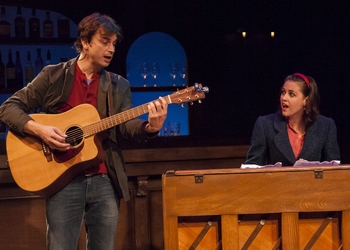 When the authors can't even give their central romantic couple names, maybe they are too generic to care about. Sometimes great songs can fill in when the libretto fails, but most of the songs are not dramatically specific enough to do that. Midway through the second act, more focused than the first, we get a book scene and song for our hero, called Guy, that began to pull me in, followed by one for Girl, as our heroine is called. Unfortunately, his song, while good, contains some things that do not exactly fit his situation, and her song, dramatically right on target, has an uninteresting melody. FST's production is first rate. The ensemble is full of fine musicians who jump from instrument to instrument. Three different cast members play accordion, two play cello, almost everyone has a go at one guitar or another, plus a mandolin, and three fiddlers. Arrive early to catch the pre-show where the stage becomes an Irish pub with lots of singing and dancing. Ben Paul Williams as Guy finds a nice balance between handsome leading man and gawkish, unworldly, and unsure of himself, but with an inner fire that comes out in his music. Elizabeth Nestlerode as Girl nicely acts the part, which is a whirlwind of conflicting emotions tempered by being Czech, transplanted to Ireland. Her singing is lovely, but, unfortunately, she does not get more than one solo spot. Standouts playing featured parts and taking part in the musical ensemble are Chris Blisset as Billy, Paul Lincoln as Bank Manager and prominently on cello, Emily Mikesell as Girl's mother, Grant Alan Watkins as Svec, and Kent M. Lewis as Eamon. The ensemble as a unit is probably the star of the show. Jason Cannon directs and keeps things in nice focus, as much as the material allows. The rollicking atmosphere that our story takes place in, the chemistry between the small parts, and our romantic couple are all testament to his fine work. In the end, the problems with the piece itself, at least for me, are not Mr. Cannon's doing. Darren Server is the music director, and responsible for how fine the ensemble music-making is. The scenic design by Jeff Dean is simple but realistically plants us in an Irish pub and opens up the Gompertz stage bigger than I have ever seen it. Costume design by Susan Angermann is effective and realistic for the time and place. Lighting design is by Thom Beaulieu and sound design by Thom Korp. There are going to be a lot of people in this area who warm to Once in a way that I do not. The musical managed a healthy three-year run on Broadway, after two months Off-Broadway at New York Theatre Workshop, a fairly substantial hit there and on the road and around the world. Florida Studio Theatre is giving it a fine production. Florida Studio Theatre presents Once through December 31, 2017, at the Gompertz Theater 1241 N. Palm Avenue, Sarasota FL. For tickets and performance information, please call the box office at (941) 366-9000 or visit www.floridastudiotheatre.org. Cast (in order of appearance):