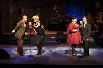 It's all in the music. Music of this era is my bread and butter, the axis of where my pop music interests begin. I have a strong attraction for the big band sound and the style of music on stage in this show; the music of the crooner era evolved from that sound. In fact, many of the singers of this era started with the bands of Miller, Dorsey (both brothers), Goodman, Shaw, etc. Often, when called to hear a tribute to this music, I run for cover, because it will probably not be as good as the recorded real thing. This is not true for what I heard at Players Center. The uncredited arrangements replicate the style nicely, the 17 musicians on stage play very well, including sounding like a third rate ensemble from time to time, which I am sure is written into the charts. I was amazed to see a number of very young faces in the risers, and by very young I mean high school. The band was recruited by Victor Mangillo, who is Director of Bands at a local high school and often featured in pits at Manatee Players, and who plays the onstage role of Biff Baker here. Across the board, the singing is fine, and considering that for a number of the performers, this is not music of even their parents' era, they have a solid grasp of the style. All of the ensemble singing and close harmony work are excellent. Credit must be given to musical director Alan Jay Corey, who is a private voice coach also and who appears on stage as Zoot Doubleman. Brother and sister Emma and Joshua Devine play Connie Miller and Wally Ferguson, respectively. Connie is modeled after a youngish Judy Garland, features in "How About You" (a famous Garland number from one of the "and Mickey Rooney" pictures), "Daddy," and "The Five O'Clock Whistle." She has a good voice, even better dancing abilities, and is just so darned cute. Wally is a delivery boy who is allowed to stay in case he is needed, which of course he never really is. That doesn't matter, as Joshua showed his talents last spring in Manatee Players' 13 in a star turn. Stevie Romero plays opposite Emma as juvenile BJ Gibson. He so reminds me of the aforementioned Mickey Rooneyall that sass and pizzazz. He nails everything asked of him. He could have stolen the show, but the rest of the cast is so uniformly strong that they don't let him. The other girl singers are Lacey Knispel as Ann Collier, Lindsay MacConnell as Ginger Brooks, and Debbi White as Geneva Lee Browne. Ms. Knispel solos on a medium tempo "That Old Black Magic," while Ms. MacConnell gets a whack at "Blues in the Night." Both renditions are so good that my mind wasn't racing back to recordings by Ella (Fitzgerald), Jo (Stafford) or Rosemary (Clooney), some of my favorite singers from this period. Ms. White solos on a forgettable number in act one, then opens act two with "I Got it Bad and That Ain't Good," with a beautiful, pure pop technique. Steve McAllister plays Johnny Cantone, the featured male crooner who is pretty much washed up. He acts the part well; his singing doesn't suggest he is in a rarefied class of male crooners. Bill Sarazen, playing older singer Neal Tilden, gives a performance that covers everything from ensemble singing to solo work (a nicely rendered "Blue Moon") to some Danny Kaye doublespeak comedy. I have never seen him in a part that gave him such a full range of opportunities and he delivers on every one of them. Clifton Feddington is our master of ceremonies, keeper of sanity when it all wants to come flying apart, and he is played beautifully by Derek Dutcher. Craig Engle plays Lou Cohen, assistant director, Jack Morris is Pops Bailey, custodian and doorman. Miranda Becker emerges from the technical side of the Players Centre operation to take the role of Stanley. Berry Ayers directs and choreographs, and just getting such fine performances from his entire cast is credit enough, but he paces well, the dancing is always in proportion, and this is just a wonderful show. In director's notes he talks about the importance of time within the show's framework and for each of the characters. He makes the metaphor clear to the audience and makes it tell. Ken Junkins provides the set design, which perfectly depicts a rundown recording studio, and is the technical director. Costumes by Jared E. Walker are gorgeous. I love the ending when the men don fabulous period hats as they leave. Tara Foster has designed the lighting which does a nice job depicting the short days of winter. This is a terrific production, and the story hits all the right Christmasy themes without overdoing it. The 1940's Radio Hour, through December 23, 2017, at The Players Centre for Performing Arts, 838 N. Tamiami Trail, Sarasota FL. Box Office: 941-365-2494. For more information visit www.theplayers.org. Cast: Musicians: |