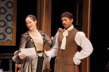 The play's style, dense wordy dialogue and heavy plotting, is very much a relic of another age, yet our young cast does a superb job with it. Andrew Hardaway is charismatic as the Count, much as he was as Oedipus earlier this season. His Count is confident of his social position, bolstered by his wife's fortunes, which allows him free rein among the women of the household. Olivia Osol as his Countess is magnificent, always carrying herself with poise yet emotionally vulnerable because of her deep love for the Count, forgiving his philandering ways. That she also maintains a lover seems not to matter in her world view, a mere plaything which she is prepared to give up. Katie Sah is Hortensia, the Count's current mistress but vulnerable to being replaced. She handles the household intrigue with grace, whispering in the ear of whoever might help her position. Jenny Vallancourt is Lucile, Governess to 12 orphans living at the Count and Countess' home and latest object of the Count's wandering eye. She portrays this character well, clearly not from the same social class as the others. Dylan Crow is Hero, The Count's longtime best friend. In a disturbing seduction scene in act two where the artifice so carefully maintained previously is stripped away piece by piece, he is nothing short of brilliant. Erik Meixelsperger is Damiens, Lucile's former guardian, and Scott Shomaker is Villebosse, playing Harlequin, the Countess' plaything. Both of these roles are underwritten, so it is hard to judge performances when the author doesn't offer much in the way of opportunities. Director Ashley Teague is an inspired choice for this piece. The cast all seem to grasp the many layers of Anouilh's intrigue and convey it clearly, no mean feat. Scenic design by Jeffrey Weber minimally conveys an ornate country chateau. Sumptuous costumes by Sofia Gonzalez mostly outfit the actors for the play within the play, ornate and of the period for Marivaux's restoration comedy. Lighting design by Chris McVicker is excellent all the way through, but reaches its zenith in the seduction scene, helping to make it harrowing. I was able to understand almost every word, no easy task for this hearing impaired sixty something, thanks to Patricia Delorey's voice and dialect coaching. One thing I will take away from this production of The Rehearsal is that I love Theater of the Absurd, and luckily I did not have to travel far to see this marvelous version at Asolo Conservatory. Asolo Conservatory for Actor Training's The Rehearsal, through March 11, 2018, at the Cook Theater in the FSU Center, 5555 N. Tamiami Trail, Sarasota FL. For more information visit www.asolorep.org or call the box office at 941-351-8000 Cast: The Countess: Olivia Osol*
