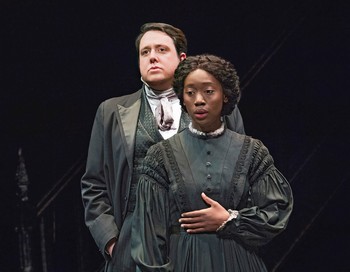 I am most familiar with this story from the original novella and Benjamin Britten's opera. There have also been adaptations for the stage, film, and television. I find that Jeffrey Hatcher's version has several built-in obstacles to success, and those, plus one of the actors not being ideally suited to her role, sabotage this production. With gothic and Victorian era pieces there is a very thin line between drama and comedy. Think The Mystery of Irma Vep or the recently seen Murder for Two which intentionally cross over to comedy. Both feature actors playing multiple roles. This play, with one of the two actors playing five roles (one female, one juvenile, and three males), inadvertently creates a danger that the mysterious tone, such an integral part of James' original, will not hold. The horror of the tale, intertwined with the unusual aura of the entire household, just doesn't permeate this telling and the audience is deprived of the full emotional effects of the story. Deanna Wright is The Woman, the Governess in the James version. Ms. Wright appeared in Oedipus Rex last fall as a second-year Asolo Conservatory Student. She and all of her classmates got the declamatory speaking style required for Greek tragedy right. Unfortunately, she brings it to this part as well, and I found that all the emotions the character is feeling get lost. This character needs to be unsure of herself at first, horrified later as she begins to uncover the mysteries of the manor, and then strong as she pulls Miles away from the influences of the past. None of that comes through. Also, Ms. Wright had a bad opening night, stumbling over lines multiple times. It is hard for me to judge if the performance starts with director Chris Clavelli or the actress, but either way it seriously undermines the effectiveness of this venture. Brian Owen as The Man fares far better. He is excellent as Mrs. Grose, the housekeeper, quite good as Miles, especially in the later scenes, and good as the master of the house, the narrator, and silently as Peter Quint. He provides the only non-speaking sounds heard during the evening and is spooky doing those. The finest element on stage is the scenic design by Steven Kemp, which features a staircase that mysteriously goes anywhere in particular. David Covach's costumes are somewhat generic rather than illuminating, Michael Pasquini's lighting is effective, and wig design by Michelle Hart is up to her usual high standards. Dog Days Theatre's The Turn of the Screw, through August 26, 2018, at the Cook Theater in the FSU Center, 5555 N. Tamiami Trail, Sarasota FL. Box Office 941-351-8000. For more information visit asolorep.org/dogdays. Cast: