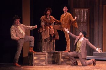 Annie Get Your Gun could have the greatest score every written for a musical comedy. I believe it has more hit songs than any other single musical: "You Can't Get a Man with a Gun," "Doin' What Comes Natur'lly," "The Girl That I Marry," and that is just in the first scene. How about "They Say It's Wonderful," "(I Got the) Sun in the Morning" and "Anything You Can Do"? And that still leaves out my favorite song in the show, "Moonshine Lullaby." Unfortunately, the book by Dorothy and Herbert Fields isn't much more than adequate. There are three versions, the original 1946, a slightly revised 1966 version that eliminates the ingenue couple and their two weak songs ("I'll Share It All with You" and "Who Do You Love, I Hope?"), and the 1999, revised by Peter Stone which reinstates these two characters and their songs and eliminates two songs at the top of the show ("Buffalo Bill" and "I'm a Bad, Bad Man") which effectively set up the story and the character of the male lead, Frank Butler. The 1999 version also has updated orchestrations, which are in my mind vastly inferior to the Robert Russell Bennett originals. There is a story in Richard Rodgers' autobiography about Annie Get Your Gun (he and Oscar Hammerstein produced it on Broadway), which says that Irving Berlin didn't like the original charts and so they brought Russell Bennett in to redo them. Now, Rodgers was known to be frugal, so if he spent all this money on new arrangements, it is going to be hard to better them. It is the 1999 revised version that is being used for The Players Center production. Director Kathy Junkins draws her cast from the area's deep pool of talent, so what is on stage is a lively community theater production of this well-loved musical. Eliza Engle-Morehouse is Annie Oakley, opposite the Frank Butler of Mark Athridge. Engle-Morehouse sings with a well-trained voice, less belt, more legitimate. He has a creamy baritone, perfect for the role. Amanda Heisey vamps as Frank's assistant Dolly Tate. Mick Mazaeda and Belle Babcock are the ingenue couple, Winnie Tate and Tommy Keeler. The exhibit real charm, but I still am not a big fan of their songs. Choreography is by Charlie Logan, who gets good results by staying within his cast's abilities. Music direction is in the capable hands of Alan Corey who leads an 11-member ensemble, including Seth Wertz doubling incredibly on harp and French horn. The effective set designs are by Jeff Webber, the costumes are by Tim Beltley, and lighting is by Michael Pasquini. Annie Get Your Gun, through October 7, 2018, at The Players Centre for Performing Arts, 838 N. Tamiami Trail, Sarasota FL. Box Office: 941-365-2494. For more information visit www.theplayers.org. Cast: