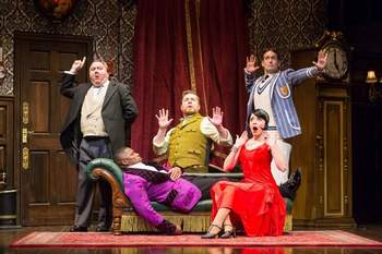 The plot revolves around a British theater company attempting a play larger than what they have attempted in the past, Murder at Haversham Manor. One can imagine that rehearsals were likely chaotic for all the reasons they often are, absences, untested acting abilities, limited technical prowess, but here we are on opening night. If it is true, as often said in the theater, bad dress, great opening night, then the dress rehearsal must have gone quite well. Mayhem at every turn is the order of the day and the mostly full house at the Straz Center got a belly full of laughs. The program is a complex matter: first a program for the play being performed for us, complete with cast list, followed by a cast list with bios of the actors playing the actors who are playing characters or manning various aspects for our pseudo play. Chris Bean is the president of the Cornley Polytechnic Drama Society, director of Murder at Haversham Manor and plays Inspector Carter. Evan Alexander Smith plays Chris, or more succinctly, postures in the role, letting his trenchcoat swirl around around him at every major plot point. Yaegel T. Welch plays Jonathan Harris, who plays Charles Haversham, the least dead body ever seen on a stage. In the opening few minutes, his physical comedy while playing dead is priceless. Peyton Crim uses a mellifluous voice and stolid British manner in playing Robert Grove, playing Thomas Colleymoore, our heroine's brother and friend to most of the others. Scott Cote plays Dennis Tyde, who plays maître de maison/family retainer Perkins. His performance as Perkins shows less excess than almost any of the others in the pseudo cast, well cast as a stiff neck. Jamie Ann Romero plays Sandra Wilkinson, playing Florence Colleymoore, super perky and engaged to be married to our dead man, but carrying on with several others. Ned Noyes, playing Max, who plays Cecil Haversham and Arthur the Gardner, is so good, I only now realized the double casting. As Cecil, I thought him to be the most nimbly comic of the entire cast, but I have to imagine that other audience members have their own favorites. Angel Grovey plays Annie Twilloil, the stage manager who gets pressed into service and decides she likes the spotlight. Brandon J. Ellis rounds out our cast as lighting and sound operator Trevor Watson. He also gets pressed into service when things are at their most chaotic, but his character doesn't quite rise to the occasion, in the funniest possible way. Here we have 2-1/2 hours of beautifully choreographed comic antics, performed by a cast without a weak link. Mark Bell is credited with the original Broadway direction, and the tour is directed by Matt DiCarlo. Bravo to both. Scenic design is integral to this production because the set has to malfunction often and perfectly. It is by Nigel Hook. Costume design is by Roberto Surace, lighting design by Ric Mountjoy. The Play That Goes Wrong is a throwback to another era of theatergoing. It begins silly, stays that way, and about mid second act it goes completely berserk, falling in around itself, much to the audience's amusement. It is for sure an entertaining night of theater, but the tickets don't come cheap. I hope there is still an audience ready to plop down $100+ for the best seats, because as long as that doesn't represent too major an investment, I am certain a good time will be had. The Play That Goes Wrong, through October 21, 2018, at Carol Morsani Hall, Straz Center for the Performing Arts, 1010 N. W.C. MacInnes Place, Tampa FL. For tickets and information, visit www.strazcenter.org. For more information on the tour, visit broadwaygoeswrong.com/tour.php. Cast (in order of appearance):