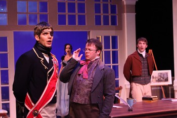 Arcadia takes place in two time periods1809/1812 and the present day (or maybe more specifically, 1993, when the play was first performed)at the Coverly estate in Derbyshire, England. Events that take place in the past are of interest to academics and students in the present, so there is a lot of interplay, making the play intellectually dense. Main topics that cross back and forth are mathematical theories and romantic poets of the period, most especially Byron. It is a longish play, about 2-¾ hours of fierce concentration, which may be a challenge for some audience members. I believe I would gain a lot from seeing it again. The cast of second-year students give Arcadia a good go; the acting is quite good across the board, with strong differences in style and manner between the two eras. In a number of past Asolo Conservatory productions I have felt that ages have not been properly defined, but in this play that seems to have improved and the audience can better glean characters' ages in relationship to each other. In the past sequences, our main couple are Septimus Hodge, tutor, played by Creg Sclavi, and Thomasina Coverly, a mathematically precocious young girl, played by Carla Corvo, who is quite believable as a 13-year-old and a 15-year-old. Both seem to age a bit in second act scenes, which does help us follow the action. Other important characters stuck in the past include Ezra Chater, a second-rate poet played by Marc Bitler, who captures the low level fop and cuckolded husband in his body language, and Lady Croom, Thomasina's mother, played by Alex Pelletier, who seems just a tiny bit young for the part, even though having married young, she might be in her early 30s during the early scenes. Her brother Captain Brice is played by Michael Judah with proper nautical bearing. Family retainer Jellaby, played by Jacob Sefcak, and Gardner Richard Noakes, played by Joe Ferrarelli, wander in and out with little import, but with proper 19th century bearing. The present is inhabited by Bernard Nightingale, played by Jonathan Grunert, who wants to work with Hannah Jarvis, played by Amber McNew, author of a book about Lord Byron who dodges Bernard's amorous interests. Grunert conveys the hollow ego of an academic. Three siblings, children of the modern day Lady Croome, also figure: Valentine Coverly, played by Michael Judah; Chloe Coverly, played by Jillian Cicalese; and Augustus Coverly, played by Brian Ritchie. This production proceeds at a steadily rapid pace, good for holding down the running time, not so wonderful for trying to grasp complex relationships, especially across two centuries. Clarity is far from ideal, and I am unclear whether this is the fault of guest director James Dean Palmer or author Tom Stoppard. Scenic design by Jeffrey Weber is lovely and serves both the past and present almost equally well. Costumes by Sofia Gonzalez are quite lavish for the historical period and well imagined for the present. When past and present collide on each other, the effect is properly dizzying. Patricia DeLorey gets some quite decent English accents from her cast, but voices projecting into the Cook Theatre are hit and miss, adding another challenge to understanding this complex, wordy play. Movement director Eliza Ladd's work with the actors could be tightened up, as physical interactions between a couple of characters (one slap, a brief fight) were not as crisp as they should have been on opening night. Asolo Conservatory for Actor Training's Arcadia, through November 18, 2018, at the Cook Theater in the FSU Center, 5555 N. Tamiami Trail, Sarasota FL. For more information visit www.asolorep.org/conservatory or call the box office at 941-351-8000. Cast (in order of appearance):