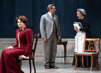 It is 15 years after the end of Ibsen's story, and Nora returns to secure a divorce that Torvald never executed. In a series of one on one confrontations, we learn Nora's story during those 15 years. Hnath writes with a present-day sensibility while his characters exist 150 years ago. Three of the characters go off on tirades using the "f" bomb, totally out of period and unnecessary. Since the character of Nora is written with the sympathy loaded against her, the actress playing her needs to exude great warmth to hopefully win the audience partially over to her side. Kate Hampton, whom I have admired in many past roles is not that actress. She is strong, certainly powerful enough to have survived in a world hostile to women, but she doesn't win me over. Real-life husband David Breitbarth plays Torvald, who, In Hnath's world, made all the efforts to reach compromises and more importantly to take care of his wife and family. Breitbarth is at his best playing strong, unbending types as he does in The Crucible currently playing in repertory with this play. He is effective, but I don't believe this role plays to his greatest strengths as an actor. Beloved Peggy Roeder plays maid Anne Marie to perfection. Olivia Osol plays daughter Emmy, but the confrontation with her estranged mother is the weakest of the play. Peter Amster, usually director of wonderful comic productions (The Matchmaker, The Parfumerie) seems like a not ideal choice to direct this play, which is more drama than comedy. Perhaps some of the imperfect casting might have caught a different director's eye. All of the technical elements, costumes and scenic design by Robert Perdziola, lighting by Christopher Ostrom and especially hair/wig and make-up design by Michelle Hart are at the usual exalted level for an Asolo show. A number of years ago, I made my only live acquaintance with Ibsen's classic, starring Katherine Michelle Tanner in an excellent performance as Nora. A few years ago Katherine Michelle and Kate Hampton squared off in a confrontational play at Florida Studio Theatre called Gidion's Knot where both were excellent. I think I might be willing to revisit this play with Katherine Michelle, who plays warmer than Ms. Hampton. A Doll's House, Part 2, through March 31, 2019, at the Mertz Theater in the FSU Center, 5555 N. Tamiami Trail, Sarasota FL. For tickets and information, call the box office at 941-351-8000 or visit www.asolorep.org. Cast: Anne Marie: Peggy Roeder*