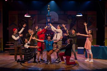 Just in case anyone still doesn't know what this musical is all about: It is the day of the annual county spelling bee and there are six contestants; Rona Lisa Peretti, former champion many years ago is our hostess; Vice Principal Douglas Panch is moderator; and Mitch Mahoney is grief counselor. The musical is loose enough to allow each company to put their individual stamp on it with inserted specifics that speak to the area. Players has "The Pug Pirates" as a school team moniker because someone connected to the show must have a pug. Three or four audience members are chosen to join on stage at each performance as contestants. The show is a terrific ensemble pieceevery one of the kids gets a solo songso it is ideal for non professional productions. Players has rounded up a very strong cast, many of our best local performers including one absent from area stages for a long time and sorely missed. Lacey Knispel plays Rona to perfection, her business suit a little too tight, endlessly cheery, with a real nice belt for the singing. Tony Boothby is Douglas Panch, recently released from some enforced rest, still capable of winding himself a little too tight. It is really nice to see David Addis in a role that lets him really show his stuff as Chip Tolentino. He is a frequent cast member at Manatee Players, but this part shows him off more than any other I have seen him in. "Chip's Lament" is a highlight of a great evening. Natalie Taylor as Logainne Schwartzandgrubenierre shows that her turn as Cindy in last fall's Suds at another theater was no flukethe young lady has big talent. Jalex Scott is the socially challenged William Barfee (pronounced Barfay), the comic lead. He played the same role a few years ago at Manatee Players and I can understand why. He is just about perfect casting. Eliza Engle-Morehouse is Marcy Park, who speaks five (or is it six) languages. She often essays leading ladies, bringing a big voice and presence to spare in this part. Amelia Woerner is Leaf Coneybear, a part previously assigned to a man (the part launched Jesse Tyler Ferguson). She brings a sweetness to the character who is not loaded with self confidence. Grace Callahan is Olive Ostrovsky, whose parents are not the strong presence in her life that she might hope them to be. After a long absence, Kenn C. Rapczynski returns to area stages as Mitch Mahoney. The character can fade into the background, and even in his solo song may not excite, but an actor who memorably played Jean Valjean a bunch of years ago isn't going to go unnoticed. Rapczynski loads his portrayal with nervous energy under the surface, and turns "Prayer of the Comfort Counselor" into just short of a showstopper. Danae DeShazer directs and choreographs with a sure hand. Some years ago, Ms. DeShazer was frequently cast in important roles (Hedy LaRue in How to Succeed in Business Without Really Trying, Sheila in A Chorus Line, and Edwin in The Mystery of Edwin Drood) and I thought her a fine talent. Her recent absence was due to leaving the area and making McLeod Summer Playhouse in Carbondale, Illinois, her home base. She has honed her talents and is now a fine director bringing out the best in all of her cast. DeShazer is assisted in both functions by Kelly Burnette. Ralph Nurmela's gymnasium setting is excellent, full of fun little touches. As the curtain is up when the audience enters the auditorium, they immediately get into the spirit and excitement of what is going to transpire. Costumes by Georgina Willmott are effective, but budget conscious and lighting design by Cody Basham sets the appropriate moods. This production of The 25th Annual Putnam County Spelling Bee reminds me that much of the best musical theater is taking place at our community theaters. We have an amazing pool of young and not so young talent to draw upon. The 25th Annual Putnam County Spelling Bee, through March 10, 2019, at The Players Centre for Performing Arts, 838 N. Tamiami Trail, Sarasota FL. Box Office: 941-365-2494. For more information visit www.theplayers.org. Cast: