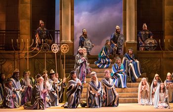 Nabucco is very early in the composer's oeuvre, and his compositional hand is still limited. He had not moved beyond forms that stood the bel canto composers in good stead, every aria followed by a cabaletta, chorus with solo. Act two, scene one is simply a double aria for the soprano. There is a really nice trio for Abigaille, her sister Fenena, and Ishmael before the finale to act one. In two short years, two operas later, Verdi's dramatic abilities had improved greatly with Ernani and its powerful second act which moves from aria to duet to trio to quartet in powerful musical strokes. This is not to suggest that Nabucco is less than an early work from the pen of a soon to be genius. All over the piece are things that presage what its composer would become. The third act chorus for the now enslaved Hebrews, "Va pensiero," became a quasi national anthem for a divided Italy, and even today, a performance in Italy is likely to have most of the audience singing along. The opera may not be among Verdi's masterpieces, but it has its riches and continues to be revived reasonably often. Verdi is Maestro Victor DeRenzi's passion. Although I have seen him lead performances of operas by other composers, I have memories of indelible performances of other Verdi operas, including both versions of Don Carlos (Italian and French), Aida, and Rigoletto, which he will lead again in the fall. The overture features a superb brass ensemble right at the opening, fine work by the woodwinds throughout, and all night long his orchestra does him proud. He paces this slightly unruly opera well, giving it firm shape. Rochelle Bard as Abigaille, believed to be the daughter of Nabucco, is interesting casting. All my exposure to this piece has been with a dramatic soprano in this role. I have wondered why, as I listened to them struggle through the coloratura demands of the big aria, "Anch'io dischiuso un giorno," and cabaletta, "Salgo già del trono aurato." Ms. Bard has no such difficulty, singing with assured technique; the dramatic demands of the character are left for the music to delineate. Maria Callas sang this role very early in her career and it is this type of voice, one that can comfortably encompass some of the more dramatic bel canto heroines (Lucrezia Borgia, Norma, Anna Bolena), that I want to hear attempt it, since historically this opera was written only a few years past the operas that host those ladies. All of the other principal roles are well cast. Stephen Gaertner is imposing in the title role, superb when he finally gets his aria, "Dio di Guida" in act four, as Nabucco returns from insanity and embraces the god of his enemies, the Jewish people. Love is not a central element of this biblical drama, but Lisa Chavez as Fenena, true daughter of Nabucco, and Ben Gulley as Ismaele, nephew of the king of Jerusalem, are both fine in somewhat thankless parts. The part of Zaccaria, high priest of the Jews, went through some changes. A different singer was announced last year, but was replaced by Kevin Short who has given some memorable performances in the past at Sarasota Opera. On the evening I attended, Mr. Short was announced as indisposed and replaced by Christopher Nazarian who acquitted himself nicely, although I suspect that Mr. Short may have brought more to the role. The chorus, who play a major role in this opera, sound well schooled, providing plenty of rich sound to fill out this opera. Kudos to chorus master Roger L. Bingaman. Stage director Martha Collins keeps the action clear; only Stephen Gaertner and Rochelle Bard do much beyond traditional opera acting. Scenic designs by Jeffrey W. Dean are lush and evocative, costumes are not credited but coordinated by Howard Tsvi Kaplan fill the stage with color. Ken Yunker's lighting design and Brittany Rappise's hair and make-up designs are also excellent. The Sarasota Opera production of Verdi's Nabucco is equal to the best work I have seen from this company. What is offered would not be out of place at Chicago Lyric Opera, Santa Fe Opera or Houston Grand Opera. Nabucco, through March 24, 2019, at Sarasota Opera, 61 N. Pineapple Avenue, Sarasota FL. For tickets and information call 941-366-8450 or visit www.sarasotaopera.org. Cast: