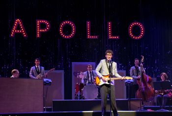 With a book by Alan Janes, Buddy is a pretty standard show business bio, perhaps a bit generic until the music kicks in. Buddy Holly, born Charles Hardin Holley (1935-1959), was an early rock and roll pioneer, drawing from the same hillbilly roots that fed Elvis Presley's music. In the few short years of his career, Holly launched over 15 major hits, including "That'll Be the Day," "It's So Easy" and "Heartbeat." Holly died in an airplane crash while on tour with J.P. Richardson (known as the Big Bopper) and Richie Valens. Sixteen-year-old Maverick Wolf is Buddy Holly, and I will take an educated guess that Artistic Director Rick Kerby chose the show with this actor in mind. In order for Buddy to fully score, and with all the hit songs it has great potential to do so, the actor playing Buddy must be a commanding presence, dominate the stage. Wolf sure resembles the star. But the entire opening night performance was a bit plagued by low energy, and perhaps Mr. Wolf, carrying the show on his shoulders, felt this more than the rest of the cast and future performances will find him in better form, because he never quite filled the role with the star power it requires. Playing Murray Deutch, Holly's first promoter, is Chris Wolf, father of Maverick. John Andruzzi as the Big Bopper has one of his best supporting parts in a long time and when it is his turn, he owns the stage. It's great to see this supporting stalwart in a really good featured role. Dylan Glover is Ritchie Valens and ditto to him, when it is time for "La Bamba." Blair Schultz as bass player Joe B. Mauldin, Jeffrey Stoddard as drummer Jerry Allison, and Tommy Busch II as guitar player Tommy Allsup form Holly's backup group The Crickets, and all contribute, both musically and dramatically. Preston Boyd directs with fluidity, but tighter transitions from scene to scene would improve things, as Janes has written the piece so that it can proceed seamlessly. Costumes by Donna Riggs are true to the period, Lea Umberger contributes a nicely functioning set, and Patrick Bedell, as always, lights with a sure hand. Tom Sell's sound design keeps the show clear, not always the case in this sometimes problematic theater. Music director Rick Bogner shows up on stage a few times, but mostly plays from the pit. Besides the musicians playing The Crickets, he is assisted by Terri Booth on various sizes of saxophones. I'm pretty sure audiences will enjoy Manatee Players' tribute to early rock and roll pioneers Buddy Holly and The Crickets. Buddy - the Buddy Holly Story runs through November 10, 2019, at Manatee Center for the Performing Arts, 502 3rd Ave W., Bradenton FL. For tickets and information, call 941-748-0111 or visit manateeplayers.com. Cast: