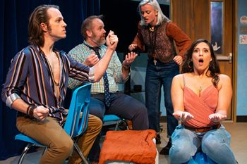 The basic story is that a high school drama teacher has received a grant to write a Thanksgiving pageant or play from the Native American point of view. Joining her are her boyfriend, a professional actress from Los Angeles, and a grammar school history teacher, each with his or her own unique prospective. It's sort of a Waiting for Guffman updated. The play manages to examine political correctness taken to mind numbing levels. Its strengths are that it is at times screamingly funny, quite cheeky in its tone and with a point of view uniquely its own. The weakness is that the characters never give the audience a chance to honestly care about them, and two of them are drawn so incisively of this time that I think the play will be seriously dated in a mere five years or so and will be pretty much unproduceable. The Urbanite Theatre production of The Thanksgiving Play provides another example of the superior acting audiences can expect from this company. Genevieve Simon plays Logan, the high school drama teacher and leader of the project, although she insists that the final product will be a group effort. She is a feminist, model second decade of the 21st century. Paul Michael Thomson is her street performer, somewhat hippy, attuned to Logan's feminism, boyfriend, Jaxton. With his unkempt hair and lack of middle class grooming, he perfectly fits the part. Clare Lopez is Alicia, living off her voluptuous looks as an actress. She proclaims that she is content just to be an actress and not think about much of anything. If her character evolves at all, she will end up as a trophy wife. Lopez' is completely on point for the character as written. Eric Leonard as Caden, is a teddy bear, claiming to be a straight white man, just the sort of person who ends up teaching grade schoolers. Although each of the four actors is excellent in his or her part, it is as an ensemble that they shoot sparks. Clearly, director Larissa Lury is a major plus, not only does she get fine individual and ensemble performances from her cast, but also sets the pace well, so the piece doesn't become overly frantic in its zaniest moments. On the technical side, the scenic design by Frank Chavez is zippy yet institutional (a high school classroom), costume design by Dee Sullivan helps the audience understand the characters, Joseph P. Oshry's lighting is, as always, highly professional, Rew Tippen's sound design works well, and Steve Patmagrian's props are highly effective. India Marie Paul's video, with local celebrities ruminating on various questions around the subject of this uniquely American holiday, adds emotional depth. Urbanite Theatre is currently in its fifth season, which is relatively young for a theater company. Many are still struggling to find footing and an identifiable profile. This company entered with a bang in 2015, with three very strong productions as a calling card. Each season I see new growth. The Thanksgiving Play is an unusual comedy from a company that I think of in terms of cutting-edge subjects, and there is no doubt in my mind that their audience will recognize Urbanite's sensibility. It is another very strong production from this company, now a valued part of Sarasota's theater scene. The Thanksgiving Play rus through December 15, 2019, at Urbanite Theatre, 1487 2nd St., Sarasota FL. For tickets and information, visit www.urbanitetheatre.com.