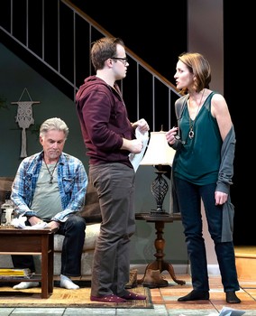 The gestation of this story is a complex one. John D'Agata wrote an essay on the suicide culture in his native Las Vegas, which is higher than national averages. It was scheduled to be published in Harper's, but was rejected at a late moment due to factual inaccuracies. It was picked up by another magazine (The Believer) and rigorously fact checked by recent Harvard graduate Jim Fingal, a process taking several years. That process was turned into a book (published 2012) with the same title as this play. In the book the email back and forths regarding basic facts were laid out on the same pages as the original text. With Gordon Farrell, this material was turned into the play in front of us now, at Asolo Repertory Theatre. Premiering on Broadway in October 2018, with the starry cast of Daniel Radcliffe, Cherry Jones and Bobby Cannavale, the play was a popular strictly limited run. I haven't read the book, but am guessing the themes covered in the play are more suitable for a book's individualized pacing, allowing complexities to be better sorted out. In a tumultuous 80 minutes, details go whizzing by this audience member's brain. The basic theme of fact vs. poetic license can be easily assimilated, but when at the half way point, John begins his defense, that he is trying to take readers on a journey toward emotional understanding of the culture of suicide and its resultant loss for the survivors, things get muddy. John is personally stuck in metaphysical emotions around losing his mother and this becomes an almost equally important theme in the play. The acting in this production is excellent. Derek Speedy has a couple of built-in pluses as he takes on the role of fact-checker Jim: He is a recent Harvard graduate, as is the character, and this is his second go round with the play, having previously played the role at Gloucester Stage in Massachusetts. He captures the fine line between nerd and being right about most of what he espouses. Tracy Michelle Arnold, the only cast member with Asolo history, is fine as editor Emily. She gets more assertive as the tension mounts between Jim and John, and her slow burn, wanting to flame, is vividly real. As John, Gene Weygandt comes into his own as the character's deep emotions take over and we come to understand how personal the story behind the essay is to him. This production may be one of the only instances where the abundance of resources available to Asolo Rep might be a disservice to the play. The scenic design by Brian Prather in particular is so lavish that it somewhat drowns the ideas in the play. There is so much detail that Celine Rosenthal's direction seems more concerned with blocking than fine-tuning the sharpness of exchanges between Jim and John, just a bit. Costume designs by Jen Caprio are excellent, as is the lighting design of Andrew F. Griffin. I'm glad to see The Lifespan of a Fact a play full of conflicting views on an important subject. A talkback in which a moderator could steer the participants toward consideration of these ideas in the context of modern news delivery and the political arena might prove fascinating. Still, seeing such a well-acted production is a fine gift from Asolo Rep. The Lifespan of a Fact runs through March 19, 2020, at Asolo Repertory Theatre, Mertz Theatre, FSU Center, 5555 N. Tamiami Trail, Sarasota FL. For information and tickets, call the box office at 941-351-8000 or visit www.asolorep.org. Cast (in order of appearance):