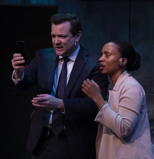The play takes place in a Miami police station. In the early morning hours, a black mother is frantically searching for information about her non-responsive son. The police have minimal information to share. She is joined by her estranged husband, who is white. As the two live through their deepest fears, in under 90 minutes we examine racism from their respective viewpoints. The brilliance lies in Demos-Brown's evenhandedness, both sides equally presented. The confrontations do not dissolve into shrill rhetoric, they are nuanced in a way that suggests characters who have lived themselves into these emotions. The only criticism I have is that the author felt the need for a clear dramatic resolution, and no matter what choice he made, it would be less rather than the more that this magnificent play calls for. Almeria Campbell plays Kendra Ellis-Connor, mother to a barely adult son. She is giving an emotionally gripping performance, one that ranks with the best I've seen this season or ever. When a playwright gives you great material to work with, it enhances an actor's ability to be brilliant. Rod Brogan is giving a performance that is equal to Ms. Campbell's, but as a member of law enforcement, trained to keep emotions deep within, his character can never register as strongly as hers can. Daniel Petzold is Officer Paul Larkin who draws the short stick. He can share only limited information with the parents, per protocol, even though the young, green, want-to-save-the-world officer wishes to wrap his arms around both and make the world better. Lawrence Evans as Lt. John Stokes is more deus ex machina than fully rounded character, although Demos-Brown does a quite good job of making him more dimensional than other, less talented playwrights might have. Director Kate Alexander keeps the drama moving, yet not explosive, so the audience is able to really emotionalize the themes. Costume designer Mari Taylor does appropriate work, but costumes are not going to make or break a production of this play. Lighting designer Thom Beaulieu shows us a stormy night in the background, an adjunct to the stormy emotions in each parent's heart. Usually reliable Isabel and Moriah Curley-Clay have created a set that feels much more like a penthouse high above, rather than an institutional police station, but that is a minor blemish. After sitting through a few less than exciting evenings of theater recently and seeing the audience jump to their feet, I was surprised to see not even a few people stand to acknowledge the power of this evening of gripping drama. For me, Florida Studio Theatre's production of American Son represents provocative drama at its finest. American Son runs through March 22, 2020, at Florida Studio Theatre, Gompertz Theatre, 1241 N. Palm Avenue, Sarasota FL. For tickets and information, call the box office at 941-366-9000 or visit www.floridastudiotheatre.org. Cast (in alphabetical order): Scott Connor: Rod Brogan*