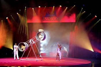 The show opens, as it almost always does, with horses, this time The Alanian Riders, headed up by Lev Gigolaev from North Ossitia-Alania, Russia. Three gorgeous horses are featured, with a chestnut and a white being, for me, the star of the act. Two women riders do stunts to delight the audience. Next up, Get the Shoe, featuring Florian and Christof, a novelty act that mixes juggling and martial arts. Following that is Renaldo's first spot, with children plucked from the audience passing a spinning plate from one to the other. While this is going on in the audience area, the stagehands set things up for Duo 19, with the art of trapeze hand balancing. Oliver and Cassie perform breathtaking acrobatic moves high above the ring. Dima Shine is next, with flag pole artistry. The act is a mixture of hand balancing and other exciting moves along the side of the flag pole, a suitable finale for the first act. Act two opens by bringing on the dogs, this time the Dominguez Poodles. Featured are nine poodles of various sizes, one Great Dane mix, two children and their parents. The highlight is when two miniature poodles power the wheel of death with a third walking outside one of the hoops. Next is Emil Faltyny with the balancing ladder. Emil is a major circus star in his native Prague, Czech Republic, and all over eastern Europe. His finale is heart-stopping. Hannah Griffith, from the United States is next on the swinging trapeze. She flies high, high above the center ring performing amazing tricks. At first I thought she was working without a net or safety device, but Pedro Reis, who with wife Dolly Jacobs heads The Circus Arts Conservatory and is extremely safety conscious, makes sure there is a guy wire. Thanks for that, because if a performer misses a trick, I would prefer not to be party to serious injury. Renaldo's biggest feature is next, with five audience members playing out a silent western movie. Trio Dandy, featuring Johnny Gasser from Switzerland, Yury Kreer from Russia, and Kirill Ivanov, also from Russia, arrives just in time for a big finale with the Russian barre. Gasser, who is the flyer is head and shoulders the best I've ever seen, executing double somersaults all over the place, and a triple. Their finale is a triple with a half twist. Part of the reason they get the final spot is that their presentation is just a little nicer than any of the other acts, with a special star quality. There is a final parade of all the acts, so the audience can show their appreciation one more time, and then the performers appear in the adjoining tent for autographs. Circus Arts Conservatory's 2020 Circus Sarasota runs through March 1, 2020, at Nathan Benderson Park, 5851 Nathan Benderson Circle, Sarasota FL. For more information, visit circusarts.org.