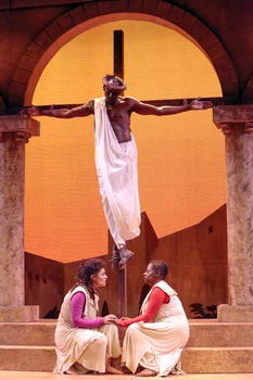 Your Arms Too Short to Box with God was the first Broadway musical with a black production team, writers and director. It ran for a little over a year, so in those days it was a modest hit. Revivals in 1980 and 1982 give it additional cache. The script and score were never published and the cast album never transferred to CD, so modern productions are rare; in fact, director Harry Bryce (who worked with Ms. Carroll over several years) had to rely on memory, and music director James Dodge re-created the musical end from the LP and other materials. Songs were lost, so what was probably a two-hour-plus show is now an energy-filled hour and a quarter, but what a 75 minutes. This musical is written in large emotional arcs, and some of narrative is presumed rather than specific, with the emotions of Jesus' followers providing the drive. Jesus, Judas and Pontius Pilate all appear, Judas almost exclusively in dance. The new theater has a larger stage and allows for the biggest cast I've seen in a WBTT production: 16 people, not that fewer has ever been a liability for this company. Several people are new to the company and a few more have appeared only occasionally. Only Donald Frison, Derric Gobourne Jr., Syreeta S. Banks and Joshua Thompson can be thought of as "regulars." But, wow what a cast. Everyone gets at least a few minutes to stand out. Raleigh Mosely II takes center stage first with "The Sermon" and instantly reminds what a standout talent he is. All through the evening, every song he participates in is uplifted by his presence. Dai'Sean Garrett, Carvas Pickens, C.J. Melton and Mr. Mosely come together as priests several times throughout the show, first for "We Are the Priest and the Elders," and this grouping sent shivers down my spine. Cequita Monique makes her debut with this company and impresses with "Something Is Wrong in Jerusalem" and later "See How They Done My Lord." Donald Frison dances the betrayal in "Judas Dance" and later Chakara Rose dances Mary in "Veil of the Temple," both excitingly. Syreeta Banks re-exhibits her star power with the title song and, keeping it the family, her mother Phyllis Banks stuns with "Be Careful Whom You Kiss." Apples do not fall far from their trees! Teresa Stanley shines with "It Was Alone" and later completely blows the roof off the theater with "I Love You So Much Jesus." Charles Wesley Lattimore Jr. is a fine, dignified yet emotionally involved Jesus throughout. His best number is "I Know Have to Leave Here," presaging his early death. Both Derric Gobourne Jr. and Joshua Thompson impress as always with their dancing, and they show continued growth as singers and actors. Artistic Director Nate Jacobs keeps finding new ways to advance the company by challenging. Director Harry Bryce finds and maintains a narrative where, because of lost material, there might have been none. Donald Frison has choreographed brilliantly. Costumes by Adrienne Pitts are a perfect blend of modern that still suggests the ancient times, the basic set design by Michael Newton-Brown gives everyone a nice space to work in, and Annette Breazeale, usually properties designer, adds a new job to her regular one, headdress designer. James "Jay" Dodge II is production manager and music director. When he leads the musical end of things, WBTT is always at its best. I hope that now that a performing edition of Your Arms Too Short to Box with God exists, it will be produced more often. It is within its narrative imperfections a work of great beauty, succeeding in bringing an ancient story alive with a modern musical idiom, where Andrew Lloyd Webber's Jesus Christ Superstar flounders. I can't imagine a better realization than the one Westcoast Black Theatre Troupe is giving it, so it's don't-miss theatre for theatregoers in Sarasota and beyond. Your Arms Too Short to Box with God runs through April 5, 2020, at Westcoast Black Theatre Troupe, 1646 Nate Jacobs Way, Sarasota FL. For tickets and information, visit westcoastblacktheatre.org. Cast (in alphabetical order): |