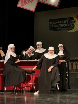 For someone like me who has seen this musical as well as several of its sequels (Nuncrackers, Nunsense 3, The Jamboree) before, the setup jokes can feel sophomoric, but are still hilarious to an audience new to its charms. Sadly, one of the surest laugh lines, "Sister Julia, Child of God," landed with a complete thud on opening night. Maybe only us oldsters remember the lady behind the quip. The music is derivative yet tuneful at the same time. It may not be great art, but it is usually an audience pleaser and, more important, within possibilities at this time. Five Manatee Performing Arts Center regulars make up the cast: Victoria Gross is a stern but firm Reverend Mother; Jessica Babcock is second in command but looking to move up Sister Hubert; Madison Bradley is Sister Robert Ann, who dreams of becoming a country singer; Lauren Butterfield is Sister Amnesia; and Kaleigh Valach is novice Sister Leo. All have moments to shine and they have great chemistry in group numbers. Remembering that Nunsense predates Avenue Q, Amnesia's puppet number "So You Want to Be a Nun" pretty much brings the house down as does what would be the first act closer if the show weren't being performed in one act, "Tackle That Temptation with a Time Step" and the finale "Holier Than Thou." I was not surprised to find the singing strong, but the dancing is equally strong, not always the case with community theater, so the hero of the production is director-choreographer Cory Boyas. In the past he has demonstrated the ability to keep his choreography within the abilities of his cast, and here he brings his cast's abilities to his vision. Everyone except Reverend Mother does some pretty darn fine tap and so much more. Whenever the dancing isn't perfect, I feel that it is intentional, since the Little Sisters of Hoboken aren't supposed to be professional performers. Music direction is in the hands of Aaron Cassette, which must mean vocal preparation, since tracks are in use due to safety concerns. The set, probably rented, is by In House Productions and is fine but not the strongest element, and the authentic-looking costumes are by Suzy Sajec. One of my strongest takeaways from this production is a reminder of how much time, energy and talent our local performers donate to our stages. Many of them are as talented as some of the professionals who work in the area, and could have careers if they wanted. My gratitude to all in this sparkling production for sharing those gifts with the community. As was the case with last month's Winter Wonderettes, there are multiple ways to enjoy this production: in person; from your car, like a drive-in movie; and streamed at your home, so check the web site below. Nunsense runs through January 31, 2021, at Manatee Center for the Performing Arts, 502 3rd Ave W., Bradenton FL. For tickets and information call 941-748-0111 or visit www.manateeperformingartscenter.com. Cast (in alphabetic order): |