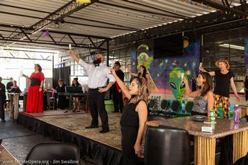 For several reasons, this performance is their strongest thus far. Indoors the voices have far more impact than they did at Cage Brewing where I saw the fall programs. A piano (verses electric keys), a large ensemble of singers, and the ability for more stagecraft all combine to raise this program to new heights. Experience garnered over multiple months has resulted in more effective programming. Eric Ferring, tenor and with a Metropolitan Opera debut in his future (pandemic willing), opens with "Dies Bildnis ist bezaubernd schön," Tamino's first aria from The Magic Flute. He returns later in the program with Count Almaviva's first act aria, "Ecco, ridente in cielo," from The Barber of Seville. A few months ago I wrote that Ferring has a big voice with gorgeous legato, and nothing has changed. This is a voice, living locally, that has potential for a solid career at the Met. Who knew that John Adams' Nixon in China has become mainstream? Peter Sellers, who directed the first production, was Boston based, as was I, at the time of this opera's gestation, so it has been in my bones for a long time. Jenny Kim-Godfrey sings "I am the wife of Mao Tse-Tung," a fiendish coloratura aria which she nails, complete with high E above high C at the climax. Vlad Markov sings an aria for villain Count Rudolpho from Bellini's La sonnambula, a lovely bel canto treat, but "Ah non giunge" from the same opera would be the greatest hit the program title promises. Other solo numbers include: "Hai già vinta la causa" from Mozart's The Marriage of Figaro sung by Chris Holloway; Linda Holloway sings Mimi's third act "Donde lieta usci"; Chris Romeo rings in with Calaf's first act aria "Non piangere, Liù" from Puccini's Turandot; Sarah Norden, with an assist from Linda Holloway and Jenny Kim Godfrey, sings Carmen's second act opening Gypsy Song; bass Tyler Putnam sings Banco's aria from Verdi's Macbeth and "Vecchia zimarra, senti," the Coat Aria from La Bohème, suggesting potential of a major career on the regional circuitdefinitely a voice I would like to hear more of. Several extended ensembles fill out the program. "Musetta's Waltz," with Sarah Nordin as Musetta, and the final 10 minutes of Act IV are the other La Bohème selections; and the Act I septet finale from Mozart's Don Giovanni concludes the evening with everyone on stage. Teresa Ancaya is again at the piano offering outstanding accompaniment, while Maestro Mark Sforzini plays a number of bassoon lines and conducts the biggest ensemble pieces. His musical preparation of all the principals is outstanding. The remaining performance of this program is today at The Museum of Fine Arts at 4:00PM. There are new programs coming the last weekends of February and March, so check out St. Petersburg Opera's website for details as they become available. Opera's Greatest Hits, by St. Petersburg Opera Company, runs through January 31, 2021, in St. Petersburg FL. For more information, please visit www.stpeteopera.org. Cast: