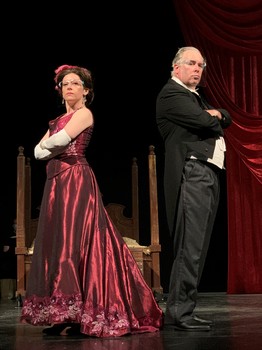 I saw I Do! I Do@ pre-Broadway, in Boston, many years ago. As I currently do not connect strongly to my 15-year-old self, plus I was blinded by the star power of two of Broadway's most beloved performers (Mary Martin and Robert Preston), seeing it now is like seeing it cold. The musical is based on a moderately successful play, The Fourposter, a 1950s vehicle for Hume Cronin and Jessica Tandy. It has been said that when adapting a play into a musical, make sure you are improving on the original, something that, based on published reviews, Jones and Schmidt, with legendary Gower Champion as director and the irascible David Merrick as producer, seem to have forgotten. Parts of the score are rather dull and little of it is emotionally honest. The opening sequence, featuring the marriage of Agnes and Michael, seems to go on far too long. The show spawned one song that got a good deal of radio play: "My Cup Runneth Over," a top ten hit for Ed Ames in 1967. Ms. Cassidy and Mr. Caswell make a valiant try in making this musical more than mediocre, but the whole affair just resists their efforts. Mr. Kerby directs according to the needs of the piece, which is set in a bedroom with a marital bed the predominant image. Lots of props help vary things a bit and lots of costume changes, by Suzie Sajec, liven things up. Donna Buckalter designed the set: faux red drapes across the rear proscenium which frames the action nicely. Aaron Cassette is at the grand piano, rear center stage, and this makes a welcome return of live accompaniment. As always, he does a great job. Manatee Performing Arts Center has revealed that next season will open in their usual mid-August slot with Pippin, a musical they did five or six years ago and one that remains ever popular in these parts. I Do! I Do! runs through May 9, 2021, online and at Manatee Performing Arts Center, 502 3rd Ave W., Bradenton FL. For tickets and information call 941-748-0111 or visit www.manateeperformingartscenter.com. Cast: . |