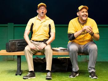 The play is not complex, with two mismatched men, coming together to coach a little league team. Don is experienced, Michael is new to baseball. During the season they bump heads, and learn about each other through male bonding. The writing is above average for this kind of play, and a humorous undercurrent adds some layers of nuance to the characters. Fortunately, FST fields a first rate cast. Nicholas Mongiardo-Cooper, new to FST, plays Don, a blue collar stand-up guy. Yes, he has some rough edges, but he also has a real emotional connection to the kids. When life threatens to knock him on his ass, he mans up. Timothy C. Goodwin plays Michael, a bit of a nebbish from the get-go, but we find out why as the play progresses. Both performances are excellent and engage the audience. Jason Cannon maintains a separate rhythm for each character. As the two men adapt a bit toward each other, it is just thatneither moves too far from their emotional center, which keeps them more interesting. The excellence of this production comes from Mr. Cannon's superlative direction. Brian Dudkiewicz provides a simple but effective ballfield via artificial turf covering the stage and a low wall at the rear of the stage. Lea Umberger's costumes are effective, mostly baseball attire over casual street clothes. Jim Hunter's lighting design and Thom Korp's sound design are both simple and effective. What has stayed with me after enjoying Rounding Third is thinking about the way very different men come together. Male bonding is very different from the female version, at least according to playwright Richard Dresser. Rounding Third runs through August 29, 2021, at Florida Studio Theatre, Gompertz Theatre, 1241 N. Palm Avenue, Sarasota FL. For tickets and information, please call the box office at 941-366-9000 or visit floridastudiotheatre.org. Cast: Don: Nicholas Mongiardo-Cooper