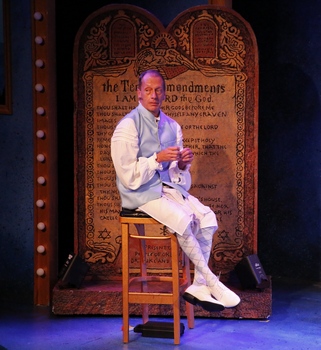 Javerbaum presents God as a bit of a diva, sometimes cranky, with some decided opinions on how he should be regarded and treated by us, the mere mortals. Midway through the first act he begins a review of the ten commandments and their over-importance and suggests a newer, more relevant but less dogmatic set. During this section and continuing through to the end, there is a serious change of tone, from caustic/funny to more existential as God begins to wrestle with real theological issues such as why God allows bad things to happen to good people and good things to bad people, and does God answer prayers and how. Brad Wages, known mostly as a director and on the education staff at Venice Theatre, takes on the role of God. His comic timing in the early going is not his strong suithe seems afraid to let the jokes land on their own. But he finds his stage legs more as the play progresses and in the latter half his honesty is moving. He is assisted by Debbie White as the archangel Gabriel, who handles the biblical end of things, and Patrick Mounce as archangel Michael, who early on goes into the audience and fields questions and later challenges. Pacing is solid and things are never allowed to drag, thanks to director Dennis J. Clark. Scenic designer Tim Wisgerhof has done his usual excellent job. The set piece of the ten commandments is stunning. Maureen S. Demers dresses everyone in lovely costumes in pastel blues. Venice Theatre's policy is masks for everyone in the audience, and they must stay on when inside the facility, which has undergone and is undergoing renovations, so that everything looks fresh and new. Starting September 24, The Mystery of Irma Vep takes to the Pinkerton stage and Almost, Maine will be the main stage offering. An Act of God runs through September 5, 2021, at Venice Theatre, 140 West Tampa Ave., Venice FL. Box office: 941-488-1115 or www.venicestage.com. Cast: |