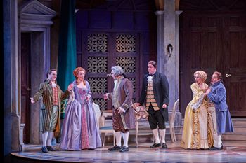 Rossini is my favorite opera composer, possibly because the first live opera I saw, at age 12 or 13, was his Semiramide, then still obscure, Today it is much less so. I have never encountered one of his operas that I didn't like on some level. I was previously familiar with the five one-acts via a recording. As the work of a very young man (he was 20 when The Silken Ladder was written), they are hit and miss. This one has a sensational overture which had the audience I shared the performance with cheering for several minutes before Maestro DeRenzi could proceed, a couple of nifty ensemble numbers, a lovely tenor aria, and a finale that looks forward to what the composer would be best known for, orchestral crescendos. During the years I have been an avid Rossinian, singers specializing in the repertoire have appeared. There was one wave around the 1970s and well into the 1980s, and today we have three superstar tenors (Juan Diego Flórez, Lawrence Brownlee and Javier Camarena) who excel in bel canto (Rossini, Donizetti and Bellini). These men are inspiring more productions and recordings, as well as more singers in various voice categories to match their virtuosity. All this is having a trickle down effect. While none of Sarasota Opera's six singers are first class Rossini stylists, their exposure to the explosion of this repertoire has produced niceties that 10-15 years ago might not have been there. Leading the cast as Giulia is Maestro DeRenzi's favorite light lyric soprano, partly because she has a beautiful voice and lovely stage deportment and because she is locally based. She is not ideal casting, more right for lyric coloratura roles such as Juliet in Romeo and Juliet, which she sang two years ago, than for more central coloratura roles like Olympia in Tales of Hoffman or Lucia di Lammermoor. Maybe I'm being a bit picky, because her acting of this role is pert and kewpie doll adorable, just what the story calls for. Her tenor, as he was for the other two last spring, is Christopher Bozeka as Dorvil. In the story, he is already married to her. He definitely has the makings of a very good Rossini tenor, able to handle all the florid writing and he cuts a handsome figure on stage, a fine leading man. Alexander Boyd is Blansac. Giulia's guardian wants to marry her off to him, but see above. Boyd expertly handles the Rossini baritone patter with some poise and, as an actor, he is excellent. I have seen him in more core baritone repertory and this singer is very versatile. He ends up with Maria Miller as Lucilla, Giulia's cousin. Lucilla is a lesser role, mainly consisting of an arietta, but Miller knocks it right out of the ballpark. Sean Anderson is the servant Germano who meddles in everyone's romantic affairs. Having seen him as Eisenstein in Die Fledermaus, which does not require anywhere as much florid singing, I was very pleased at how well he handled this role. The last role, Giulia and Lucilla's guardian Dormont, is sung by Samuel Schlievert. The role exists for plot purposes and to fill out the final ensemble, but has no major moments. Maestro Victor DeRenzi conducts with a steady hand. Members of the Sarasota Orchestra who have their own busy schedule at this time, play brilliantly for him, especially the woodwinds. There is a lot of very exposed upper woodwind writing, piccolos, flutes and oboes, and all that witty writing is luscious on the ear. Director Stephanie Sundine gets far better than average opera stage acting from her singers and, with assistance from the surtitles, makes the story understandable. Howard Tsvi Kaplan has clothed everyone in proper period attire. The lovely setting is uncredited. Lighting design by Ken Yunker is bright and sunny as an Italian morning. Hair and makeup design, including wig design, is credited to Kellen Eason, doing excellent period work. I never expected to hear any of Rossini's one-act operas unless I unexpectedly ran into one at an opera training program. I might have expected that that performance would be accompanied by piano only and with student artists. I will always be grateful to Sarasota Opera for their presentations. The Silken Ladder (La scala di seta) runs through November 13, 2021, at Sarasota Opera, 61 N. Pineapple Avenue, Sarasota FL. For tickets and information call 941-366-8450 or visit www.sarasotaopera.org. Cast: Dormont: Samuel Schlievert