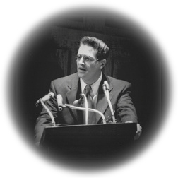 What an honor to be asked to write a Rialto column. Since what I was asked to write about was a musical I saw a little over a month ago and have already written about, many of you will have already read much of what follows. However, this piece has been modified and enhanced since it last appeared as a post on "All That Chat" - in the interim I conducted a brief, informal and extremely pleasant interview with the creators of The Fix, Messrs. John Dempsey (book & lyrics) and Dana P. Rowe (music). Aside from being very talented, theses two men are personable, humble and quite forthcoming in their answers to all questions put to them. As for me, I hope this is just the first of many Rialto columns I'm asked to write for Talkin' Broadway. So here goes... Welcome to my Old World. In my world, everybody eats pretty well, sleeps when they can, and generally enjoys life to the extent their old bodies will allow. We stretch, we kvetch and we (occasionally) get to travel to Washington, D.C..... It was Friday, and I was loving D.C. Having arrived early Thursday morning, I had already had an amazing behind-the-scenes tour of the State Department (and, no, I didn't get to see Mrs. Albright), strolled from the Einstein Memorial into the Lincoln Memorial and seen the new and wonderful Franklin Delano Roosevelt Memorial along the Tidal Basin. If you haven't been to D.C. lately or have never been at all, you must include this as a destination on any upcoming trip (the FDR Memorial opened in May '97). Later Thursday night, I joined my friends at a charming eatery close to Dupont Circle called The Mercury Grill where I had a delicious (tender, moist and succulent) Chilean sea bass. A wonderful rice concoction accompanied the fish. Amy (my host's girlfriend) had a different tasty fish and my buddy had some tantalizingly aromatic and wonderful meat dish (sorry, I don't remember what it was - it's now been over a month. Just go there; everything's good!) Since we were going home for cookies and Jerry (Seinfeld, that is), we skipped dessert. Thus, after discussing Amy's departure the following day to Ghana as part of the Presidential advance team, I left The Mercury Grill fat and happy. The following day was show day. I had called the Signature Theatre on Thursday to secure our tickets and even spoken to JSY (known as "The Other Joseph From NYC" here on the forum) to see if we could hook up. So I was looking forward to finally meeting some of the active East Coast participants of Talkin' Broadway - Siobhan, Anne and Ed, as well as JSY. I got directions to the theatre (Thank God!), and spent the day excited about that night's show - Eric D. Schaeffer's American premiere production of Dempsey & Rowe's The Fix. I met my friend at the office of the senior Senator from California. We had some business to attend to, then left to see the House and Senate in session. We then took a gander at the Library of Congress - what a spectacular reading room! After that, we were hungry and it started raining, so we hopped in a cab which took us to Chinatown, where we enjoyed a sumptuous lunch of dim sum and kung pao chicken. (I'm getting hungry now just thinkin' about it!) We knocked around a bit after our very late lunch, walked my friend's dog, and, before we knew it, it was time to get to the theatre. Since it was now pouring, we hopped into the first cab we saw. Now the thing about D.C. cabs is that they are allowed to take more than one fare at a time. Since we were on 18th St. and the guy already in the cab was only going to 19th St., we figured it wouldn't be too far out of our way. Well, fifteen minutes in rain and rush-hour traffic later(!), we finally dropped this guy off. Twelve minutes to the 8PM start time, and for this Old Man, everything was NOT hunky-dory! Anyway, we got to the theatre (somehow) at three minutes before curtain, and took a couple of empty seats in the front row (audience left). My friend liked sitting so close (because he wanted to feel part of the experience) and since the side was practically the middle - the theatre is really pretty small - I went for it. And I'm glad I did. As the lights dimmed, we were suddenly placed in the realm of national politics - a Presidential candidate (played by Jim Walton), in the throes of an erotic liaison, dies suddenly. He performs a wonderful post-death vaudeville-style song called "Let the Games Begin". This, along with the bright colors and shiny black vinyl costumes, sets the tone of the show. We then meet Cal (Stephen Bienskie, right), who is a guy that everyone can probably relate to on one level or another. He's a college kid who is not looking for political glory - he's just a t-shirt and jeans kinda guy, who suddenly becomes the vessel through which both his mother's (Linda Balgord) and uncle's (Sal Mistretta) ambitions are to be achieved. After an incredible performance in the number "One, Two, Three" we realize that we're in the presence of a new sort of star (I'm telling you that if either Matthew Perry ["Friends"] or Jason Bateman ["George & Leo"] decide to leave their respective shows, they'd better watch out - Mr. Bienski not only could be either one of their brothers, but he certainly has talent, timing and voice to spare). So, basically, we watch the rise and fall of this political figure, with all of the highlights and lowlights along the way. Dempsey & Rowe, who met while attending college in Ohio, later told me that they had originally set out to write a musical about the Roman era - the days of Claudius and Caligula - but set in modern times. It became quite clear to them that, as politicians are politicians (regardless of the age), there were striking similarities to the leading families of our day. Thus, similarities to the Kennedys, Clintons or other First Families is purely, well, coincidental or perhaps, rather, inevitable. We get to know Cal's mother, the ULTIMATE stage mother (played by a very striking - and I don't mean that in a g