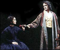 I had a moment, sitting in the dark, during tech rehearsal of Jane Eyre in La Jolla, when I remembered the first time I saw Les Miz. It was over nine years ago, and I remembered thinking at the time, " if I could just work with these guys, I could be part of a great musical". And then I was back in the present moment. Working with these guys, trying to remember how I got here. As the story goes, I first came upon the idea for Jane Eyre when I was browsing a book store at the Logan Airport on my way home to Los Angeles. It was the winter of 1990. I'd been pondering an idea for a new musical for months but with little success. I started reading the blurbs on the backs of the novels in the classic book section and came away with three books. Little Women, Vilitte and Jane Eyre. I don't know, perhaps if I had started reading Vilitte first I would have written Vilitte, the Musical. But I started with Jane Eyre and by page ten I was weeping. I could barely restrain myself from writing music then and there. Fortunately I was on the plane, and had to wait until I got home and finished the book. The first draft of Jane Eyre took me about a year to write and record. My first stroke of good fortune was having Anthony Crivello sing the part of a servant in the very last recording days of that first demo. It was Anthony who introduced me to John Caird, who was on holiday in L.A. with his then wife, Frances. To say meeting John Caird, the co-director of Les Miserables and Nicholas Nickleby, has changed my life would be an oversimplification, but indeed my life has changed. When I listen to the original demo now, I marvel at how John was able to hear the seeds of what is now Jane Eyre. From correcting my spelling, to challenging each lyric, his influence on the development of this piece has been extraordinary. Still, I wish he'd go a little easier on me sometimes. Okay, so St. John is pronounced "Sin Gin", not Saint John. I'm American, these things happen. John and I worked gradually on the piece over the next two years. We did a series of presentations to various producer types, performed by a group of my friends who sang to pre-recorded tracks. When the good folks at Manhattan Theater Club finally gave us our first workshop in 1994, Michael Rafter became the show's first music director. What a joy it was for me, hearing my music interpreted at the hands of a skilled professional for the first time. The next great thrill was watching John Caird stage the reading. The demo I had recorded a few years earlier came to life before my eyes. It was an extraordinary feeling. Six months later, in the winter of 1995 we would be in, of all places, Wichita, Kansas. The reason John chose The Wichita Center for the Performing Arts was because the year before they had done a production of the John Caird - Stephen Schwartz musical Children of Eden. And so I packed my winter clothes and with Marla Schaffel as Jane, Anthony Crivello as Rochester and Angela Lockett as Helen Burns, the first full production of Jane Eyre played for three weeks at the Wichita Center for the Performing Arts. The people were great. The community supported us and embraced Jane Eyre. Plus, as an added bonus, the review was a rave. (Okay, so it was written by the mother of one of the Lowood Orphans, but still, she really liked us). In the winter of 1996, (why can't we ever do this show during the summer?), Jane Eyre moved into the Royal Alexandra Theater in Toronto. With the production now being produced by David Mirvish (the owner of the Royal Alex), Jane Eyre ran for three months playing to capacity houses. With Mary Stout joining the cast as Mrs. Fairfax and Elizabeth DeGrazia as Blanche Ingram, a set by John Napier, costumes by Andreane Neofitou, musical direction by Steven Tyler, lighting by Chris Perry, orchestrations by Larry Hochman, sound by Tom Clark, this was a chance to test the show in a very big house - the 1,500 seat Royal Alex. Only things did not go exactly as planned. The other show playing in town was called Ragtime. It was a mixed blessing for us that Jane Eyre and Ragtime opened so close together. On the up side, I got to meet Audra. Also, I got great seats to see the show, which I loved, and had my picture taken with the composer, Stephen Flaherty. On the down side, Ragtime brought with it the world press. Our production was still "growing" and we ended up getting a lot of attention we didn't bargain for. And while now I see how much that process has helped us and made the show stronger, at the time it was rather overwhelming. It didn't matter that the musical was getting standing ovations every night. It was clear there was still more work to do. Also, there were no Broadway theaters available. We were all dressed up with no place to go.