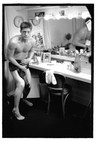 Jonathan: Welcome to Talkin' Broadway. Stephen. What started the knitting together of The Sweater Book? Stephen:: I didn't knit the sweater! I bought it at Mervyns ... (laughs). It was a $30 sweater made completely from acrylic ... very warm and cozy. JF: Which is why kept its shape for such a long time and for so many photos ... SM: That's true. And whatever homeless person is wearing it right now is probably very warm! JF: You didn't keep the sweater? SM: I lost the sweater after a photo shoot in 1998, so the last picture for the book was taken that year. JF: What was its inspiration for the book? SM: Elizabeth Taylor. I was watching the Academy Awards the year they gave her the Jean Hersholt Humanitarian Award for her work on the AIDS crisis. In her acceptance speech she said that we all have to do what we can to fight the pandemic of AIDS. And shortly before that, my friend Jane Titus mentioned that I needed to do a gallery showing or make a book of all the sweater pictures I had.