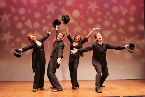 of The Musical of Musicals By Charles Battersby The Musical of Musicals: The Musical! is rapidly developing a cult following among musical theatre enthusiasts. This witty parody of the musical theatre genre recently made the jump to Off-Broadway at Dodger Stages. The composer/writer team of Eric Rockwell & Joanne Bogart, along with Producer Melanie Herman, recently sat down with Talkin' Broadway's Charles Battersby to discuss the show. Joanne Bogart, Eric Rockwell, Lovette George, Craig Fols Charles Battersby: For people who haven't heard of Musical of Musicals: The Musical! what is it? Joanne Bogart: It is a show for people who love musical theatre, and people who hate musical theatre. What we do is tell one story in the style of Rodgers & Hammerstein. Then the same story in the style of Stephen Sondheim, Jerry Herman, then Andrew Lloyd Webber, and finally Kander & Ebb. So we skewer them all. CB: How did Melanie get involved in this project? Eric Rockwell: We had done readings of the show at the York Theatre on their Monday night reading series. And Jim Morgan had decided to produce our show as part of the York's season. Melanie Herman: I saw the first reading that you did at the York. So I was observing it from day one. I liked it very much, obviously. It was such a success at the York, both critically as well as the passion that developed in people, that we wanted to see the life of the show continue, and maintain its integrity. It was important that we moved the show - we did not want to bring in a group of producers who would decide by committee where it would go, what the costumes would look like, what the set would look like, etc, etc. The York rearranged its schedule to bring it back again, there, for what was going to be a one or two month run but was extended into a five or six month run. During that period I raised the funding for a commercial transfer. The arrangement I made was that I would spearhead it for the York, maintaining the integrity so that the show we moved would be the same show that [audiences] would see. I became involved more and more and fell in love with the show, to the point of obsession, actually. I ended up becoming the producer and moving it to Dodger stages. CB: This production deliberately uses a minimalist design, and you have a Stage Manager character read the stage directions aloud. Can you see a production where all of the set and costumes are real, and there are chandeliers and smoke machines, and 40 costume changes for one character? ER: Absolutely. In order to write a show in all these styles, we needed to visualize full productions. So, in our minds as writers, there were full settings, there is a full chorus for each one. The choice to be minimal was so our audience here in New York could focus on the music and lyrics, and the story structure, without any visual distractions. But down the line theatres that want to can incorporate a chorus and production values. CB: In the current version there are jokes written into the stage directions. You call a dream ballet "Run of de Mille". Will you be able to keep those? ER: It could work both ways. You could have a visually realized production and still have a Stage Manager who is describing certain things in a comedic tone. As the script gets licensed, we of course want every word to stay in every production. But, possibly, the stage directions are the one item that some productions would want to let go of. I agree with you, though, that some of them are so fun that it'd be a shame to see them go. CB: When this project first started, it was originally the one song ... JB: ... "Follow Your Dream." It was my audition song for the BMI Musical Theatre Workshop. We had discussed, "Wouldn't it be a fun idea, one of these days, to do a Rodgers & Hammerstein parody?" The way Dames at Sea did with thirties movies, and Little Mary Sunshine and all that. Little by little it developed, and as we did the Rodgers & Hammerstein, we thought, "I don't know if this will hold the whole evening." Every time we hit a moment, it seemed best to hit it quickly and move on. You don't have to belabor it with a full-length song. We thought, "Well, why not take the same story and do a series of short pieces, all in different styles?" And that's how it was born. CB: You started this at the BMI workshop, but you knew each other before that. JB: As good friends from our acting days in '87. CB: May I ask what production that was? ER: It was a production of Camelot in New Hampshire. I was playing Merlin and Joanne was playing Nimue. But we were also in the chorus. The Camelot chorus has a lot of free time, so backstage we developed our chorus characters further and started making up songs for them. We would improvise songs that would have been in Camelot had it been eight hours long. That was kind of the beginning of our camaraderie and our sense of fun with writing. We didn't know we were writing at the time, we were just playing. But it turned into writing years later. CB: Is there any chance of that project turning a Rosencrantz & Guildenstern & Lancelot? ER: That's a good idea, we're looking for a new show idea. CB: You two live together as well. JB: We call ourselves the middle-aged Will & Grace. CB: When you work on projects, do you have official writing time, or do you fire things off around the apartment? JB: If we're very disciplined, and very good, we set aside the official writing time. But, of course, our discussion carries over into dinner conversation, and can go on all the time. On the other hand, it can disappear completely unless we actually schedule it. CB: Now, about all this writing you do ... there's a Marvin Hamlisch reference in the epilogue. That's kind of a red herring, because there's not a full Hamlisch sequence. Are there other parodies that were going to go into the show that got cut? ER: Of course. When we were first thinking about which teams to do, we thought about the team of Wright & Forrest, becau