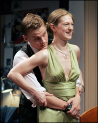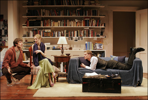 Charles Battersby: Manuscript is now in previews, for those who haven't heard of it, what is it about? Bob Balaban: Manuscript essentially concerns three ambitious young people - well two ambitious, and a friend who isn't so ambitious. It's about an unpublished manuscript by a famous author that is discovered, and a fight that ensues between them about how to deal with it. It's about truth. It's about the fun of seeing three young people struggle together to control something. It's about power and youth and success. I would almost call it a murder mystery, except there's no murder, and the victim is a manuscript. Pablo Schreiber, Marin Ireland, and Jeffrey Carlson in Manuscript CB: The author is Paul Grellong. A lot of people in New York may not know who he is, but his work has been done a lot out of town. BB: There was a series of staged readings of the piece at the Cape Cod Theatre Project that went over very successfully. People seemed to like the play a lot, and he's writing a movie right now. He's very much an up and coming young writer, out of the Paula Vogel workshop at Brown University, which has encouraged a lot of other terrific young writers as well. CB: This production was originally going to be at the smaller DR2 Theatre. BB: We were originally there, but Thom Pain is doing so well that we moved over to the DR1 Theatre, which has been the home of De La Guarda for so long, and we are now the first sort of "regular play" to occupy the space. We've carved out a more traditional thrust stage. The seating is now more flexible, and you can do a traditional play there. It's a great space. CB: And no one has to swing around on wires for this one ... BB: You could, but you don't have to. CB: That was sort of a stroke of luck for your production, that Thom Pain got that glowing review from the Times. BB: A stroke of luck. I wouldn't have minded putting Manuscript up in a tiny little space. Putting it up in front of 250 people instead of 99 people is a little scarier; it's harder to get people to come, but, on the other hand, if it's a success, it's a bigger success. We love being in this area. We think that the Union Square East area is a great place for theatre. CB: There's a lot of successful Off-Broadway shows there, like Slava's Snowshow right around the corner. BB: There's something called Beast on the Moon right around the corner, the Vineyard Theatre has a new play opening that's supposed to be quite interesting. There's a lot of stuff here, and it's fun in the summer.