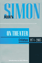 Having read this massive collection (at 826 pages a veritable brick of a book, and not subway reading unless you always get a seat), I'd like my friend to know that he's in good company. Actually, that particular review was not chosen for the book, which comprises some of Simon's best work, presented decade by decade, with director (and potential target) Jack O'Brien kicking things off with a witty and appreciative introduction. Now then, many of us, upon hearing the name "John Simon," may instantly picture that Yugoslavian-born critic dipping his quill in venom to make quick work of yet another undeserving, defenseless artist. However, On Theater is not at all a collection of poison-pen letters; it is, in fact, something of a chronicle of a romance. Am I then advocating that we should all run out and buy Mr. Simon roses, and a large box of candy? Not quite, as legendary accounts (not found in this work, needless to say) of an aggrieved Sylvia Miles dumping a plateful of pasta over Mr. Simon's head lead me to believe that he might flee from anyone approaching him forcefully with foodstuffs. My point, however, is that to read this momentous and monumental book is to marvel at Mr. Simon's exquisite use of language(s), his phenomenal memory, his vast knowledge of literature, and, above all, his abiding (if all-too-often frustrated) love of the theater. All of these traits are keenly and constantly evident as Mr. Simon, with the sharpest of wit and the most bon of mots, tells us why one production, though seemingly well-cast and mounted, fails, and another purportedly weightless evening of japes might actually be not only the must-see event of the season, but an evening to cherish for a lifetime. Yes, his infamous diatribe against Liza Minnelli is here (from his review of The Act: " ... it is a face going off in three directions simultaneously ... like any face, one that could be redeemed by genuine talent, but Miss Minnelli has only brashness, pathos, and energy."), as is his very amusing follow-up, an interview with an imaginary "Patagonian press agent" in which he defends and explains (though perhaps not to everyone's satisfaction) the basis for his strong opinions. To be sure, John Simon will never be mistaken for a shrinking violet. With great enthusiasm and conviction, he'll remind you of what may have made you adore a production you've since decided you now have no use for. This happened to me with the book's very first piece, a review of Hal Prince's environmental reworking of Candide. Characteristically, the same review also demonstrates Simon's well-known, shall we say, sensitivity to the presence of homosexuality in the theater. "Yes," he says, "it can be objected that the men's clothes are shedding all over, while the women's seem glued to the skins, but we must face the fact that few of the not-so-holy brethren who work in musical comedy still prefer the weaker sex." While Simon's need to repeatedly recognize this fact of life may be exasperating, in this case his paraphrasing of an actual line of dialogue from the libretto of the musical itself is, nonetheless, resourceful and clever. It is also exciting, due to the enormous scope of the book, to have the opportunity to follow the careers of various dramatis personae as they progress, perhaps drawing Mr. Simon's fire on one occasion and his praises on another. Unfortunately, Al Pacino, in two separate productions of Salome (though only one is listed in the index), strikes out twice as Herod according to Mr. Simon, who writes "He'll do anything for a cheap laugh ... relishing sudden leaps from hangdog schlemiel to heaven-storming ranter, from grotesque wiggleworm to fire-breathing basilisk ... did Al never hear Hamlet's admonishment to the actors not to out-Herod Herod ... ?" I confess, it was after I read this last passage that I came to the realization that I have never really cared for Al Pacino's work. Still, there were many, many times when I vehemently disagreed with Mr. Simon's verdicts, but I believe that to never be challenged is to never learn anything. If nothing else, while reading this volume your vocabulary will get a shaking-up and your dictionary a work-out. In addition, Mr. Simon offers delightful textual analyses, such as this one concerning a certain well-known lyric: "When a stripper proclaims that, without a gimmick, 'You can sacrifice your sacro / Working in the back row' there is more to this than an ingeniously ambushing rhyme. There is the word play on 'sacrifice' and "sacro,' suggestively coupling the sacred and the profane; the cozily butch irreverence of addressing the sacroiliac by its nickname; and, above all, the ambitiousness, perhaps even exhibitionism, with which a chorine jockeys for the front position." Elsewhere in the book, Mr. Simon shows his own way with a phrase when he delivers a resounding thumbs-down by simply flipping and skipping "from the sublime to the ridiculous" into the memorable "from the ridiculous to the slime." It is tempting and would be a pleasure to quote example after example of Simon's glorious prose, but I wouldn't want to ruin your pleasure, for if you are at all interested in the theater in the final third of the last century you must read this book. The question remains: is this John Simon person Jekyll, or Hyde, or both? It really doesn't matter; when the writing is this fine, the author needs no apologist. And, incidentally, I'd like my actor friend to know that, while Mr. Simon may have thought you detestable in that Shakespeare play, he thought you were "delicious" in that comedy by Gozzi!