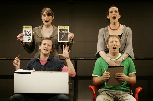 Bell and Bowen have been friends and collaborators since 1995, when they appeared in a production of Good Times in Virginia Beach. Their collaboration was born somewhat from necessity, they joke (Bowen is a musician and composer, and Bell writes the books), but it is also based in their friendship, their admiration for each other's gifts, and their shared love of musical theater. I spoke to them both a few days after the show opened, and we had a great conversation about [title of show], creativity and its concomitant struggles, musical theater and its fans - and even Talkin' Broadway. Beth Herstein: What can you tell me about the genesis of [title of show] that I don't know from seeing it? Hunter Bell: Really, what we talk about in the show is pretty accurate. A friend of mine sent me an email about the inaugural New York Musical Theatre Festival in 2004, and it was three weeks before the entries were due. Jeff and I had collaborated before and then had taken some time off. You know, life and work gets in the way of being creative sometimes. We said, "Let's try to pull something together and do it." If nothing else this would get us back to creating again and writing. So we made a commitment that whatever we came up with at the end of three weeks, we would put a stamp on it and put it in the mail. Even if we never heard about it again, at least it would get us off the couch, get our pens moving, get Jeff to the keyboard. Jeff Bowen: There's plenty of material that wasn't put in the show, but that is the nature of a musical. We didn't want to take up five hours of your life, so we boiled it down to 90 minutes. HB: A tight 90. BH: That's one of the things that is evident watching it. You act as if the product is much more arbitrary and much less crafted than it actually is. HB: It's seemingly in the moment, in progress, as if you're watching the creation. But, everything is in the script and is really crafted, either for story purposes or for the timing of a joke or intro to a song. Also, Jeff and I set out to write a show we'd want to see. So, although the goal is to shed light on the creative process, it's also to entertain. It's not a therapy session for us. At heart, it is a musical theater piece - we want you to have a good time and sing the songs and all that. Hopefully the audiences will find that too. JB: As unconventional as we strive to be, it's still a musical. It still has to have that conventional layout. Otherwise, it wouldn't be considered a musical. It would be a Unique Theatrical Experience. BH: You all have to maintain a fine balance with what you're doing, so the show doesn't become completely indulgent, and so it retains its shape and structure. How did you manage that? JB: We managed that by bringing in a director [Michael Berresse]. If we had tried to do it all ourselves, it probably would be the most self indulgent revue you'd ever seen. HB: And eight hours long. JB: But we have someone who's navigating to make sure it doesn't become that, and that it stays at a level of accessibility for the audience, so that they can get in. HB: Also, there's our b-s meter. We try and let it be specific and about our experience, but hopefully the specificity of our experience is universal to an audience. An audience member might not get all the references in the show, but may know that it's hard to create. The goal is to make it as universal as possible. BH: How do you envision your target audience? HB: We just sat down and started to write a story, without a target audience in mind. We hope that as many people as possible come in and enjoy it, of course. But, if we had sat down and prepared a flow chart and set out to write the most universal demographically appealing piece, I don't think we'd be sitting down and having this conversation with you now because it would have gone nowhere. JB: Underwater. HB: Exactly. So, while we don't want to alienate anybody, we wrote the story that we knew how to write. It would be tricky if we started to cut out, say, the Mary Stout stuff, because somebody might not know who that is. If you keep shaving away the carrot, so at the end of the day, everybody understands it or gets it, but I don't know what you'd have left. We do think about our audience, but I don't think I would have done anything differently. It's just not something that Jeff and I were interested in, writing the thing with the broadest possible appeal. I think it's great to do that, and in another project we may. But, in this specific project, it's about us creating in the moment. And, I'm really proud about how it turned out in this piece. JB: Interestingly enough, we still don't have a target audience. And, over the years that we've been doing this, we've been finding that people stumble in who are the husbands and wives of actors, or people who happen to be accountants or mathematicians or whatever, who don't get the musical theater references. But they go for the ride because they are taking a journey about four people who are learning to collaborate and make something that they believe in. That's kind of universal. You don't have to be a musical theater show queen to understand what it is to go after a dream and follow through on your instincts. The die hard musical theater fans who love the art form don't understand how in the world anyone outside of them could like the show. I liken it to when I read The Adventures of Kavalier and Clay [the Pulitzer Prize winning novel by Michael Chabon] about comic book writers. I'm a huge comic book nut, and I've been a comic book reader for years. So when I read the book, I knew 99% of the references to comic book artists and to the writers. What was so strange to me was that the book had been recommended to me by friends who don't read comics at all. I asked them, "How did you even like this book? You don't know any of the people they're talking about?" Then, I realized it was because it's not about comic books. It's about friendship 