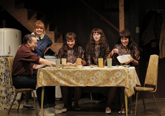 That would have been the end of it, except that in 1980 the band was "discovered." The respected group NRBQ convinced its label, Rounder Records, to re-release "Philosophy of the World," rock critic Lester Bangs and musician Frank Zappa called them "better than the Beatles," and Rolling Stone magazine named the Shaggs "The Comeback of the Year." No one debated the group's musical talentas Bangs put it, "They can't play a lick!"but the Shaggs' fans claimed that rock had become too overproduced and finessed and heralded the group's outsider sound, interesting syncopation (or lack thereof), and the youthful innocence of the lyrics. The group's detractors were equally impassioned, comparing them to "lobotomized Trapp Family Singers" and calling them "mind-bendingly horrible." Susan Orlean aptly stated in her 1999 New Yorker profile following yet another re-release of the Shaggs' album, "Depending on whom you ask, the Shaggs were either the best band of all time or the worst." Not long after the 1999 re-release, the Shaggs came to the attention of playwright/lyricist Joy Gregory, composer/lyricist Gunmar Madsen, and director John Langs. The three were fascinated by the band's story and its dramatic possibilities, and, though juggling numerous other projects throughout (Gregory has written extensively for television and is a co-founder and active member of Chicago's Lookingglass Theater; Madsen is a Grammy nominee with a wide variety of credits on television, in film and on the stage; and Langs has worked with Lookingglass and many other prestigious regional theaters), they've collaborated on their original musical The Shaggs: Philosophy of the World ever since. There have been several readings along the way, as well as productions of earlier incarnations at Lookingglass and the 2005 New York Musical Theater Festival (NYMF). This summer, the show is enjoying its first full-fledged Off Broadway run in New York, on the main stage at Playwrights Horizons. The show does not debate the quality of the music, but instead focuses on the Wiggins' complex family dynamic and the frustrations that occur when people live in circumstances which don't match up to their dreams. A comic thread and lively musical numbers balance the more poignant elements of the story. "The first half is 'Rhythm Nation' and 'Thriller,' the second half is Long Day's Journey into Night and Death of a Salesman," says Annie Golden, who plays Annie Wiggin, the mother of The Shaggsand whom I was lucky enough to interview recently. "Attention must be paid." John Friedman, Annie Golden, Sarah Sokolovic, Emily Walton and Jamey Hood in The Shaggs: Philosophy of the World Several of the actors, including Jamey Hood (Dot) and Peter Friedman (Austin) have appeared in earlier versions of the musical. As Golden puts it, "People have really stuck with this piece." Though she's new to the show, there's a lot in the story of the Shaggs to which Golden can relate. She also began her professional career in rock 'n roll, though with considerably more success than The Shaggs ever enjoyed. In the 1970s she was lead singer for The Shirts, one of the top draws at CBGB's in its heyday, along with Blondie, Television, Patti Smith and the Talking Heads. As a solo artist in the '80s, she was responsible for the hit song, "Hang Up the Phone," among others. Her solo show Annie Golden: Velvet Prison has been performed at Joe's Pub, in the New York Musical Theater Festival, and elsewhere. She is a regular member of the choir featured in David Letterman's Christmas show. And in 2008, in El Paso, Texas, branching out to yet another musical genre, the eclectic performer gave the live performance premiere of "The World is Stone," an original song by Sir Tim Rice (who, she's proud to point out, introduced the number). Despite her acclaim, she remembers some rough times at the beginning, like being showered with spitballs at a concert in London. "Yes, I know what the girls are going through, yes I have similar stories," she said in an interview about The Shaggs with Playwrights Horizons. Also, like the Wiggin girls, Annie lost a parent at a young age. "My mother died at 42, so Austin's early death really resonated with me. I didn't have to reach far to play the scene where Annie tells the girls [about Austin's death]." As successful as she has been in music, Golden is best known for her decades of well received television, movie and theater work. Her acting career was launched, famously, by the Academy Award-winning director Milos Forman. He was "either talent scouting or slumming" in the late 1970s, she says, when he visited CBGB's and heard The Shirts perform. Impressed with Golden's vocal skill and her charisma, he promptly invited her to audition for the movie version of Hair, which he was directing. Golden flew to Los Angeles, where she went through several auditions before ultimately being cast as one of the central characters, Jeannie, in the picture. The audition process was daunting and difficult, she says, her first taste of Hollywood. In addition, once she got the part, Golden, who'd never been trained in voice, acting or dance ("I was schooled by my experiences," she says), was "thrown [right] into the processchoreography, dancing, rehearsals." The movie, along with her appearance as "Mother" in a Broadway revival of Hair in 1977, launched Golden's acting career. "Now it's thirty five years later and I never stopped." In fact, she's being modest: over the past three-and-a-half decades Golden has amassed an impressive and diverse set of credentials. In film and television, she's had recurring roles on "Miami Vice" and "Cheers," guest spots on several shows in the "Law & Order" franchise, and parts in the recent film I Love You Phillip Morris and the upcoming The Trouble with Cali. On stage, she's been in The Public Theater revival of On the Town, both in Central Park and on Broadway; played Audrey in the long-running off Broadway production of The Little 