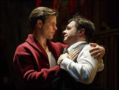 Set in 1937, The Nance is the hilarious and heartbreaking story of Chauncey Miles (Lane), a gay burlesque comic who plays a swishy, dishy stereotype. He picks up the sweet and naive Ned (Orsini) in an automat, where "the boys meet the boys." They fall in love, and Ned literally gets in on the act when he joins Chauncey's troupe as a straight man for their sketches. In his first foray onstage, Ned is frozen with fear, and it's a riot. But just as The Nance can get you crying with laughter, it can move you to tears. For his part, Orsini shows how a lovable lug who's down at the heels becomes a brave young man who stands on his own two feet. Of his co-star, Lane raves, "Jonny is an exceptionally talented young actor, with a huge future ahead of him. From the moment he walked in the room to audition, we all knew he was special, and had tremendous access to his emotions. Ned was certainly the most crucial and difficult role to cast, and it was our good fortune to find Jonny. We are such a team. I have to say that I couldn't do what I have to do in the play without him. The fact that he's also a sweetheart and a joy to work with was the icing on the cake." Though the 5-foot-10-½, boyish-looking actor grew up as a "shy kid" in Cheshire, Connecticut, Orsini, 27, is now a natural in the spotlight. The Outer Critics Circle nominated him as Outstanding Featured Actor in The Nance, and the Theatre World Awards will give him the Dorothy Loudon Award for Excellence in the Theater on June 3 at the Music Box Theatre. "I'm really grateful," says Orsini. "(Casting director) Daniel Swee at Lincoln Center jokes that since I already know how to do impressions of Helen Hayes and Tallulah Bankhead (in The Nance), I'll need to learn to do Dorothy Loudon next." By the way, this isn't Orsini's first Beane play. In 2008, he co-starred with Chad Allen in The Little Dog Laughed at TheatreWorks in Hartford, Connecticut. There, he stepped in and played Alex, the gay hustler, after Jeremy Jordan was stricken with appendicitis.