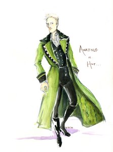 BH: Great Comet and Peter and the Starcatcher started out in small spaces and with small budgets. Then you had to expand these shows to fill up Broadway stages. What kind of challenges did you face as designer? PY: When you have a show that's small, and then goes into a larger space, you're looking for ways in which you get the same story impact from a great distance. With Great Comet, and even with Peter and the Starcatcher to a lesser degree, you still have a fair amount of your audience that is very close to the costumes, so your range just has to expand. When Great Comet was in a tent, I had to focus on how [the actors] could live in a space very close up to the audience. It was all very cinematic and detail oriented. Texture was very important. When we moved to Broadwaythere were multiple stops to BroadwayI wasn't allowed to lose that texture and I didn't want to lose it. Our cast is still right next to the audience and it's constantly moving. So, I needed to maintain that detail and to make sure that our ensemble was a little brighter and bolder but still had the ability to sink into the set. [The ensemble is] this bridge between our audience, who are in modern clothes, and our principals, who are living through the story. Their costumes are collaged out of pieces that you could buy at a thrift store or at H&M.