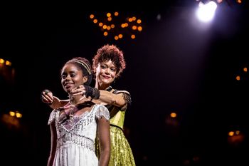 PY: The principal characters have smaller tweaks, because their color story and shape relates to that of the other characters. But one exciting thing working on [the costumes for] this show is the diversity in our casting. We have a very pale redhead who is a Natasha cover, and Denée has a very dark skin. The way that a color plays in space next to those skin tones is very different. So [I make] macro choices that you're not necessarily going to see as an audience member. I'm not going to change the dress altogether. The [ensemble's] costume track is really inspired by the particular strangeness of each dancer slash musician who comes into the show ... One of the newer swings in the cast walked into the room, and he has a Freddie Mercury meets Portland, Oregon, vibe to him. So, for the duel I gave him one of those crazy low-cut unitards. If you try to put something on a performer that doesn't relate to them at all, the audience is going to feel that. They will look like people who are in costumes and it creates a distance between them and the audience. The story is a love story, and it's about burgeoning sexuality, and this show wants to highlight the sexuality of the performers. The men are in sexy, tight pants, and even the women who are in period clothes, we want to show a little more of their arms, and see their backs, and just open up their bodies a little more. It's a fleshy show, without being trashy. BH: So, to shift gearsyou won a Tony! PY: I did. BH: How did that change your career trajectory, if at all? PY: I think it sped up the connections I was able to make. The theater world is close enough that even if my work on Peter and the Starcatcher hadn't won the hardware, I've met people who loved the design so much, and loved the play so much, and understood the way design worked in that play. I feel that my career would have taken the same trajectory but it wouldn't have gotten that adrenaline shot. BH: What other changes did it bring about? PY: I had a day job, a part time job, that allowed me to take off big chunks of time if I had a big project, but if I was doing a tiny show I could do double duty. It was at a financial consulting firm, not even in the theater world. I had taken time off to do Peter and the Starcatcher when it went to Broadway, and then I went back to work. If I didn't go back to work, I was going to lose my healthcare. So, I got nominated for a Tony Award when I was still at that office. I came into work the next day, and they had gotten me a banana pudding. They were like, "Congratulations! You are disqualified from the office Halloween contest." It was very, very nice, but they had no idea of the significance. Then, I started getting design jobs very quickly, and I told them I couldn't work there anymore. I was pretty good at that job, and so they told me, "We think we could make it work, you could balance it." BH: You majored in history and memory in undergrad. What was your focus? PY: I studied the way in which we write history and the firsthand accounts, and how memory and perception can vary. Perception can change into fact, and relates to the way we view history over time. BH: That sounds relevant to the work you do today.