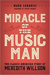 The Classic American Story of Meredith Willson by Mark Cabaniss Book Review by Rob Lester Also see Rob's review of "The Book of Broadway Musical Debates, Disputes, and Disagreements" by Peter Filichia Miracle of The Music Man: The Classic American Story of Meredith Willson, while full of affection and appreciation, is also full of familiar tales and tidbits if you've read some of the others. The writer, however, brings his own perspective and appreciation via years as a music publisher, composer, arranger, producer, educator, broadcaster, and serving as advisor to the museum and foundation, in Willson's hometown, that also are focused on the legacy. He also conducted his own interviews and research which increased his admiration. The final result is an enjoyable read with observations and quotations that paint a picture of a Mr. Nice Guy with a strong work ethic and a range of talents. Included in the 19 chapters are backgrounds of Meredith Willson's grandparents and parents, his growing up in the Iowa town that was the model for The Music Man's locale (and some history on the place itself). That musical becomes the centerpiece of the biography, starting with due respect paid in the chatty foreword by Rupert Holmes (who, like Willson, entered the world of writing for the theatre after years of crafting standalone songs and trying other musical avenues). The hat Mr. Cabaniss wears (and tips to his subject) is not that of a well-meaning but overzealous fan with a mission to exalt his hero to genius or godlike status. He lets the ample samples of accomplishments speak for themselves and lets Willson's documented practicality, pluck, and modesty regarding his successes, slips, and struggles endear him to us. The presentation is unpretentious and accessible, unapologetically assuming a reader's sincere interest in learning, in some detail, how one career chapter follows another–serendipitously or by decisive design. He wields no metaphorical magnifying glass to ferret out show biz gossip or analyze songs' elements, lingering over them with lingo only schooled musicologists would relish. Keeping a reader's attention, the breezy biography packs in plenty of information and social interactions, from Willson's early days with his own big brother and big sister to his involvement with the Big Brothers/Big Sisters charity organizations, earning him an honor bestowed by President John F. Kennedy. Sometimes the Cabaniss chronicle reads like a fantasy plot concocted for an old Hollywood "small town boy makes good" movie. After high school, flute and dreams in hand, Meredith high-tailed off to New York City, leaving mother Rosalie and dad John; another John–John Philip Sousa, the famous bandleader–soon signed the young man. Later, he was with the New York Philharmonic under Toscanini and before long was conducting himself. Then came a whirlwind of work as music director and on-air personality on radio shows for years to come, as well as jobs scoring for movies including Charlie Chaplin's The Great Dictator and The Little Foxes starring Bette Davis, in a role originated on stage by Tallulah Bankhead, with whom Willson bantered on radio shows. The public could put a face to the name when he moved to that new-fangled medium called television. Two women who coincidentally had the surname Wilson (spelled with a single L) would figure into the saga, thirty years apart. There was Peggy, the girl from back home, whom he married when he was 18. Then in 1950, singer Eileen Wilson (not mentioned by name in the book), with Meredith's own orchestra, recorded one of his original songs, "Till I Met You." Several years later it was interpolated, with just two words changed in the lyric (in the repeated chorus-ending title line), to become "Till There Was You," the big ballad in the score of The Music Man. The path to the triumph was paved with rejections, realizations, and rewrite after rewrite, before rewards like rapturous reviews and awards for the show and film were all one could wish. Not bad for an Iowa kid whose performing career began playing a shepherd (at the age of four) in his church's Christmas pageant when the child playing Joseph didn't enter on cue, so mini-Meredith ad-libbed that the MIA Biblical figure would be coming presently, adding, "He hath gone to the toilet." Each chapter begins with a pithy quotation, some from the man at the center of our attention (such as "I'm not easily discouraged"). An advantage of this book's being sent to the printer so recently is that it is able to include reporting on the productions of The Unsinkable Molly Brown revised by Dick Scanlan as well as this year's Broadway revival of The Music Man, which a cock-a-hoop Cabaniss attended on opening night, describing the production as "flawless" and "pure joy." He also had access to the vast personal Willson archives recently donated to and digitized by the Great American Songbook Foundation founded by Michael Feinstein. And, while he was able to interview Eddie Hodges, who'd played little Winthrop in the original production of The Music Man, his quoted comments comprise a disappointing total of two sentences. More was gleaned from chats with widow Rosemary Willson and Cy Feuer, who almost produced The Music Man with partner Ernie Martin. And there's devotion to detail and commendable atmosphere in telling of the many drafts, debates, and living-room presentations of the ever-evolving score of that eventual smash, but other topics get comparatively scant attention. Vintage reviews are interesting, but I'd love to read some worthy first-hand insights from in-the-trenches directors and actors. A mere two pages is all that's allotted to a discussion of Willson's fourth and final musical, the Broadway-bound look at Christopher Columbus, closing in California: 1491, starring John Cullum and Chita Rivera. Some "what happened?" stories lurk. Some quotes from the words of lesser-known songs might be nice instead of the famil