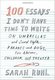 100 Essays I Don't Have Time To Write: On Umbrellas and Sword Fights, Parades and Dogs, Fire Alarms, Children, and Theater (Faber & Faber - Hardcover Book/Kindle Edition) Essays by Sarah Ruhl. Released 9/2/14.
