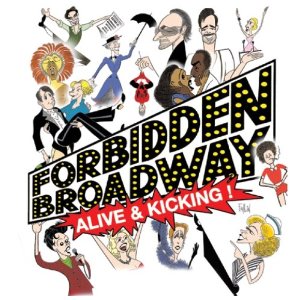 New version by Gerard Alessandrini. Natalie Charle Ellis, Scott Richard Foster, Jenny Lee Stern, Marcus Stevens. "Prologue and Forbidden Broadway: Alive and Kicking," "Livin' Evita Loca," "Matthew Broderick & Kelli O'hara Do Nice Work," "Annie/Granny," "Once Is Enough," "Sondheim and Bernadette," "Rock of Ages (Nascar Shows)," "Sutton Foster in Anything Goes," "Catherine-Zeta Jones on the Tony Awards," "Newsies," "Julie Taymor & Bono in Spider-Man," "Porgy & Mess Segment," "Smashed," "Mandy & Patti," "Judy Garland at the End of the Rainbow," "The Book of Morons," "Finale," "On Our Way Encore."