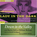 England-based Sepia Records brings back older musical theater fare and pop recordings, putting on CD some things previously released only on 78 rpm records. A recent issue includes the television cast recordings of Lady in the Dark and Down In the Valley, both with music by Kurt Weill. These are not actually the NBC TV soundtracks, as both were recorded in studios after the actual broadcasts. The lady in Lady in the Dark needs to think (and consult a shrink) to figure out who her lover should be, whereas the other story concerns two lovers who are sure of their love despite all odds. The album is topped off with two non-Weill Broadway songs of love. Lady in the Dark opened on Broadway in 1941 and made it to TV in 1954. In between there was a movie version. Gertrude Lawrence originated the title character on stage, Ginger Rogers got the movie role, and Ann Sothern was chosen for television. This version is quite enjoyable. The chorus, which carries more of the singing than in most shows, does solid work without being especially distinctive. Carleton Carpenter is a cheery presence, although those familiar with other recorded versions will likely find his contributions less memorable than the hammier, more idiosyncratic Danny Kaye or Adolph Green, especially in the tongue-twisting showpiece "Tchaikovsky." I like Ann Sothern's crisp and breezy take on the title role. Her phrasing and admirable enunciation bring out Ira Gershwin's witty words in his first score after brother George's premature death. In the musical's centerpiece, "My Ship," taken at a relaxed tempo bringing out the emotion, she has sensitivity. Though more of an actress than a singer, I think she's a good fit for this magazine editor having troubles, fantasies and dreams and undergoing psychoanalysis (all sung!). She's delightfully haughty in bits of dialogue and anchors the production of the show, where the lady in the dark sees the light and figures out who her best bet as a lover should be. A happy ending! The orchestra, conducted by Charles Sanford, is quite good, as is the sound in the CD transfer, as is love. Weill's Down in the Valley is subtitled "an American folk opera" and is the melodramatic tale of a convict awaiting execution and his loyal true love. The old folk song "Down in the Valley" is woven throughout the tale. The piece, which was not written for the professional stage, includes a good amount of dialogue and recitative along with some tender and ardent love songs. The man knows he'll soon die, but he and his lady need to know their love never will ("you are the darling of my heart ..."). The lovers are reunited when the man manages to escape from jail for a farewell reunion where they express their feelings (now it's called "closure"). Romantic in a brighter way is the flashback which shows how they met. The saga, with lyrics by Arnold Sundgaard, dates from 1948 and the TV version was broadcast two years later, just weeks before composer Weill's death. Heading the cast of 11 are William McGraw and Marion Bell as the lovers (there's another studio version boasting the glorious voice of Broadway legend Alfred Drake, recorded the same year), both singing well. Pardon the puns, but McGraw as the convict sings with conviction and Miss Bell is as clear as ... well, you know. She's best known as the original lead in Brigadoon and being one of the eight wives of that show's lyricist, Alan Jay Lerner. Also on the album are two bonus tracks of then-recent show songs recorded as singles by Marion Bell in 1947, the year of Brigadoon. Singing with a more noticeable quick vibrato, she is heard on Carousel's "If I Loved You" and, in duet with Jimmy Carroll, "They Say It's Wonderful" (Annie Get Your Gun). Both are traditional, straightforward versions that are nice extras. Oh, if only NBC and television stations still had regular broadcasts of musical theater productions! It sounds like a Broadway lover's dream, but it was once a reality. That would be my kind of "reality TV".