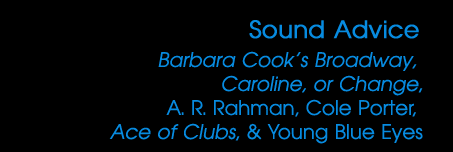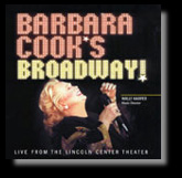 As the title suggests, the CD is a celebration of Broadway, and it features numbers Cook performed in productions on Broadway ("Till There Was You" from The Music Man) or elsewhere ("Mister Snow" from Carousel), in concerts ("In Buddy's Eyes," which Cook performed in Follies in Concert), or on one of her various albums ("It's Not Where You Start" from See Saw). While it is wonderful to hear Cook revisit these numbers, it is even more delightful to hear her tackle lesser performed numbers such as "Wait Till We're Sixty-Five" (On A Clear Day You Can See Forever), "(It's) A Perfect Relationship" (Bells Are Ringing) and "I'll Marry The Very Next Man" (Fiorello!), as well as three numbers from She Loves Me not sung by Cook when she appeared in the original production: "Tonight At Eight," "He Loves Me," and most delightfully, "A Trip To The Library." Other highlights include one of the most achingly beautiful renditions of "This Nearly Was Mine" from South Pacific (her phrasing on the last line in particular should be required listening for all singers, as it is a virtual masterclass in subtlety and beauty), a wistful "Among My Yesterdays" (The Happy Time) and a pairing of Irving Berlin's "What'll I Do?" and Jerry Herman's "Time Heals Everything" that plays every heartstring like a virtuoso. The album is punctuated with some of the patter contained in the show (enough to set up the song, but never so much that it bogs down on repeated listenings) and contains most of the numbers present in the show as it is currently performed at Lincoln Center (the opening number, however, is from when she shared the set of King Lear at the Vivian Beaumont space). As always, her music director/pianist, Wally Harper, provides solid accompaniment and delicate arrangements.