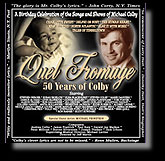 Before listening to the album, the only song of Colby's with which I was familiar was the hysterical "I Can Sing" from Tales of Tinseltown (previously recorded by Alix Korey on her first CD, Songs You Might Have Missed). Thus, it surprised me that his ballads resonated more with me than his comedy numbers: the opening number, "My Song" (effectively sung by Michael Feinstein),"Lana Laney" (a touching story song about seeing someone at a high school reunion and sung by Eddie Korbich), and the final number, "That'll Be Enough" (beautifully sung by Audrey Lavine). While a large number of the songs are very show specific and would be hard to perform in clubs or cabaret shows, Quel Fromage is a treasure trove of unfamiliar material and well worth looking into, especially by theater companies interested sampling his shows. For more information visit Michael's website.