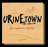 Urinetown, which recently transferred to the Henry Miller's Theater after a highly acclaimed Off-Broadway run, is the brainchild of Greg Kotis. After burning through most of his money in a backpacking trip through Europe, Greg reached the point where he could not even afford a pay toilet. This set him to thinking and he came up with one of the strangest plots ever to be set on a Broadway stage: a distopian future where, due to a severe water shortage, all urination is controlled by a corporation that ruthlessly enforces its draconian laws. Not only is it a privilege to pee (as is stated in one of the more entertaining numbers), but those who can't afford the surcharge or who pee illegally get sent to Urinetown, an inferred concentration camp locale from whence no one ever returns. Urinetown just drips with irony and satire and is so self aware that it makes your CD player resemble HAL 9000, making it long on intellectual charm but short on actual heart. As every critic under the sun has noted, Urinetown owes a lot to Kurt Weill and Bertolt Brecht, both in its 'theater of representational detachment' style and its sound. It opens with a distillation of every overture by Weill and his stylistic fingerprints are all over the score. The two young lovers, the soon-to-be-anarchist-leader Bobby Strong (passionately sung by a very strong Hunter Foster) and his ultra-literalist, oh-so-adorably naive beloved Hope Cladwell (sweet voiced Jennifer Laura Thompson), sing a prototypical Weill/Brecht love ballad, "Follow Your Heart," which takes the whole "You Gotta Have Heart" message literally. Iron hearted (and lunged) urinal manager Penelope Pennywise (delightfully sung with much gusto by Nancy Opel) gives her all in "It's A Privilege To Pee," a fusion of "Pirate Jenny," Sweeney Todd and "The Ride Of The Valkyries." The first act finale (literally called "Act One Finale") fuses Marc Blitzstein with Les Miserables to hysterical results (although, to be honest, South Park did it first and better). I would recommend making a drinking game out of identifying musical quotes and/or styles (everything from Music Man, Fiddler, Stop The World-I Want To Get Off, and Pippin) if not for the fact that by the end of the disc one would really need to use the facilities. The cast is absolutely superb and in excellent voice. It is a pleasure to hear two-time Tony winner John Cullum in a musical again and he fairly oozes with evil in the 'Brecht/Weill meets Danny Elfman' mantra against humanity, "Don't Be The Bunny" (which closely resembles another Brecht/Weill inspired number, "Crooked Path" from Grand Hotel, as seen through a manic depressive Lewis Carrol looking glass). The music by Mark Hoffman is fun, and he and book writer Greg Kotis have crafted some clever lyrics. The only flaw with the show is that it is almost too self-knowing and has its tongue so firmly planted in its cheek that it is amazing the cast can speak at all, much less sing. I am not sure how the album will age, as the humor is the sort that diminishes with repeated listenings. Nor do I imagine Urinetown appealing to those who don't possess an encyclopedic knowledge of musicals married to a warped sense of humor. But for those of us out there who happily possess said twisted souls, this album provides a rare treat.